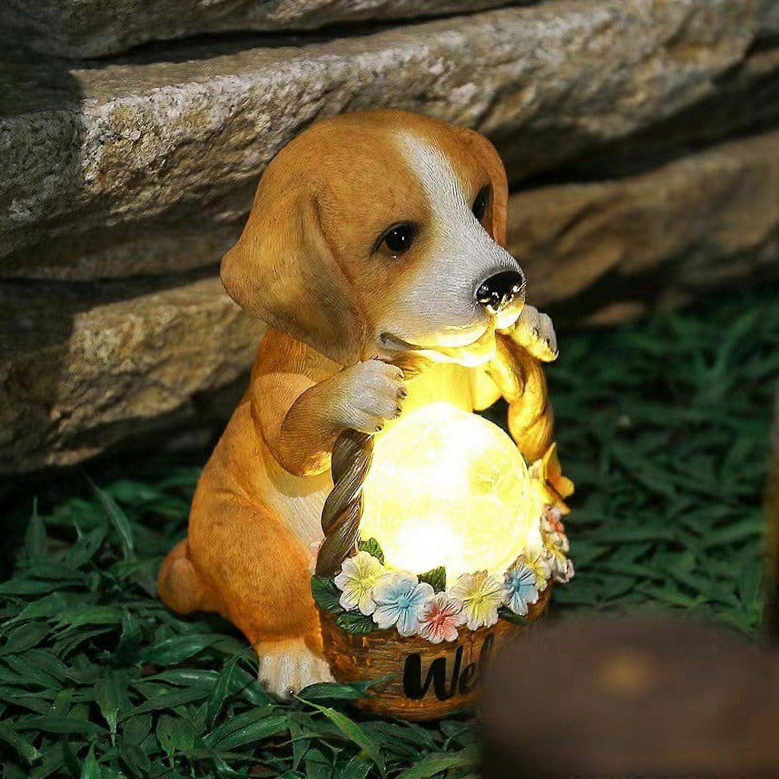 YiFudd Outdoor Courtyard Welcome Sign, Solar Lamp Puppy Statue Resin Ornaments Courtyard Terrace Landscaping Decoration
