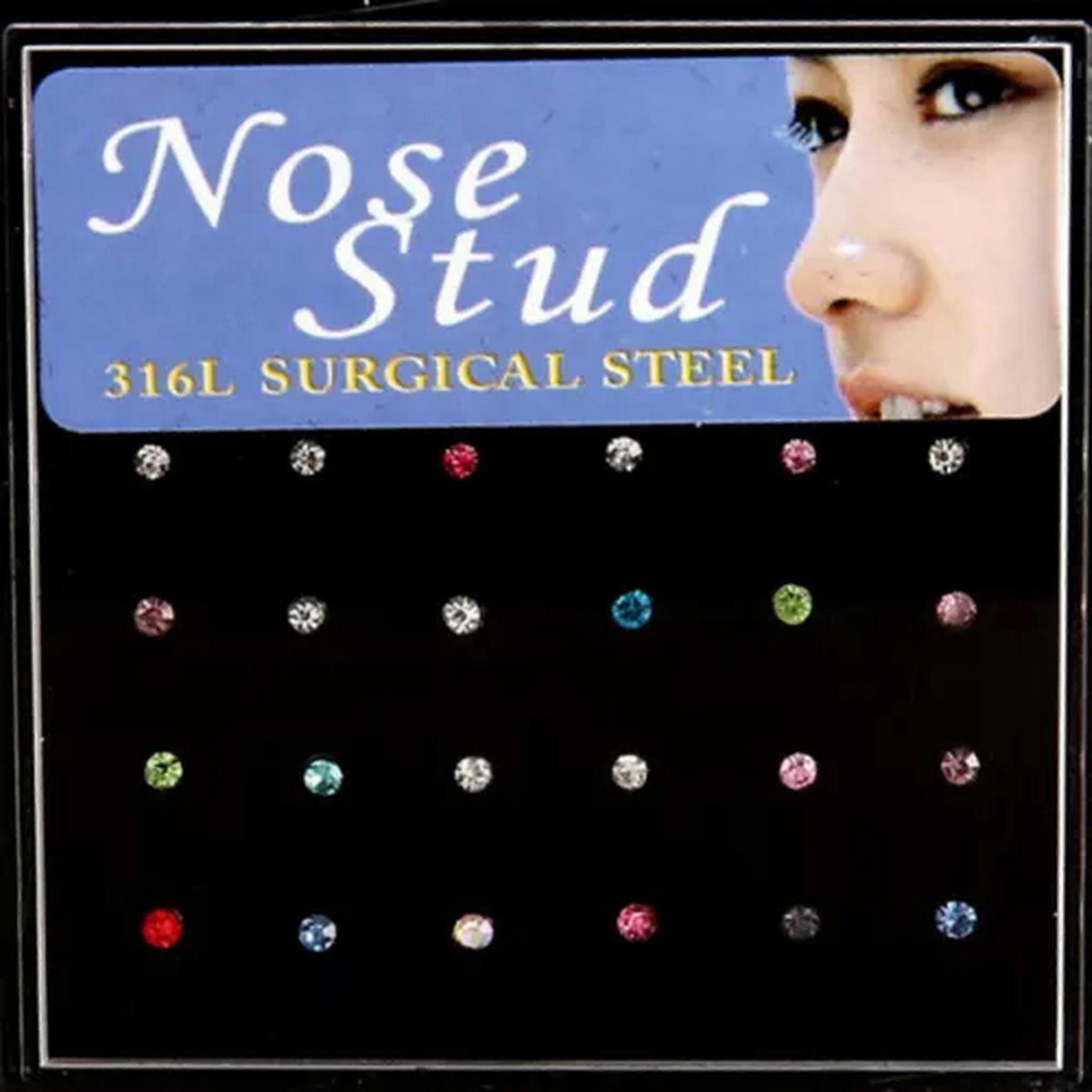 RSAMD 24/40/60pcs Crystal Rhinestone Nose Ring Bone Stud Stainless Steel Body Piercing-24pcs Multi-color