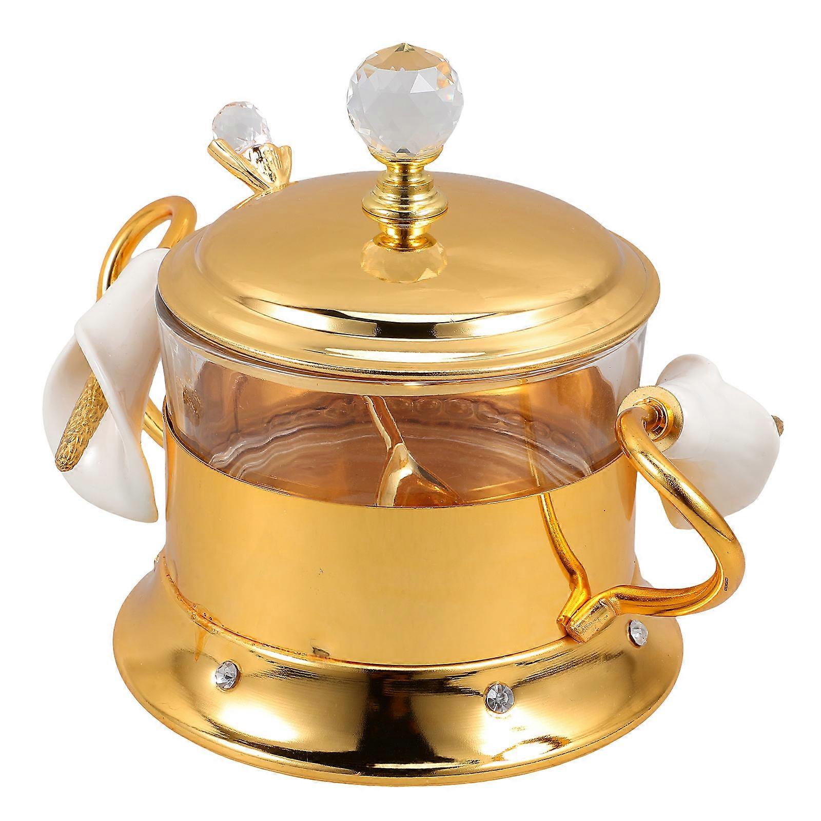 Elegant Glass Candy Jar Perfect For Restaurant Use High Temperature Resistance Golden Finish 1Pack