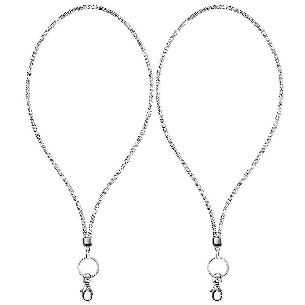 Keychain Rhinestone Office Keychain for Id Badge 2Pcs Silver Design