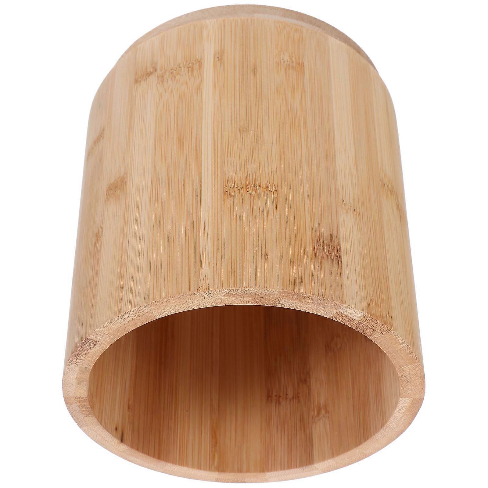 Bamboo Utensil Holder For Kitchen Counter Organizer Featuring 360 Degree Rotation With Light Yellow Finish In Spacious Design 1Pack