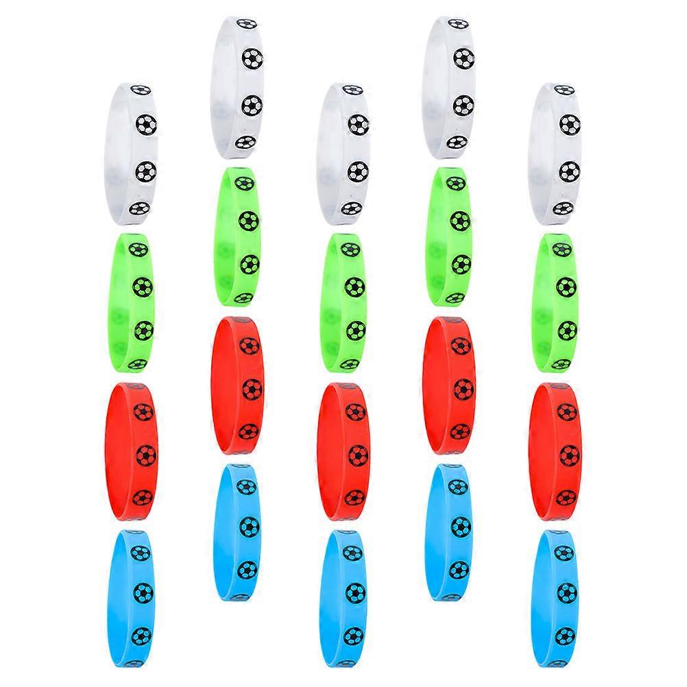 for party favors or team giveaways, these football wristbands add a fun and motivational touch to any event. Whether used as accessories during games or as thoughtful present for fans, their vibrant designs and inspirational messages help foster a sense of unity and enthusiasm among participants. Features -Color:Assorted Color -Material:Silicone -Size:7.10X7.10X1.20cm/2.79X2.79X0.47in -Footballthemed accessories: add a touch of football flair to your outfit with these stylish silicone wristbands, designed for players and fans alike. -Comfortable allday wear: lightweight and flexible, these wristbands provide a yet comfortable fit for extended use during sports or casual outings. -Distinctive : available in bold colors, these wristbands help identify team members and enhance group during matches or events. -Waterproof and durable: resistant to water and sweat, these wristbands maintain their even in challenging sports environments. -Great for party favors: distribute these wristbands at footballthemed parties or events to delight guests and create a memorable experience Package list: 20 x silicone bracelets