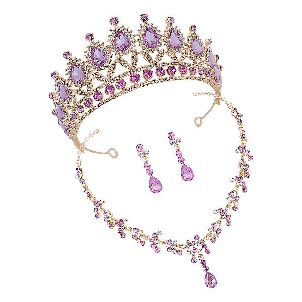 Women Rhinestone Jewelry Set Crown Bridal Tiara with Earrings Necklace 1Set