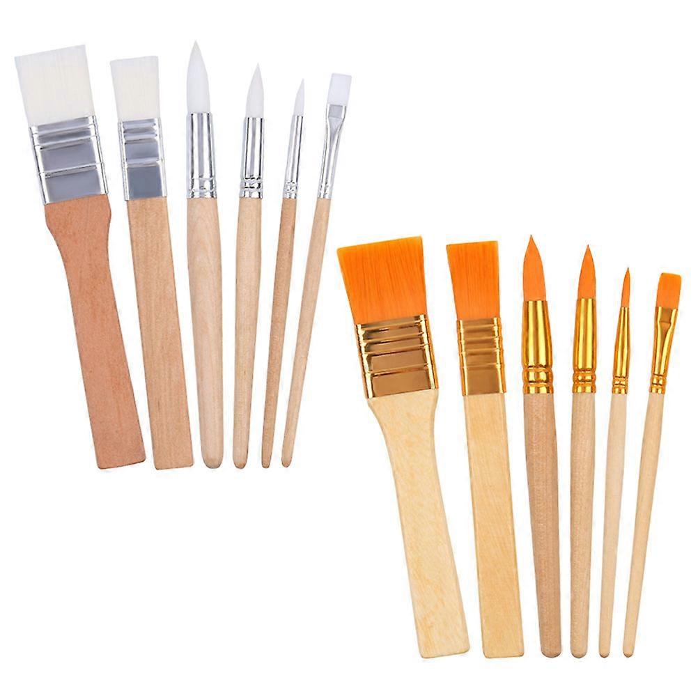 Oil Paint Brushes Paint Accessory Ergonomic Handle For Teachers Wood Material 12Pcs
