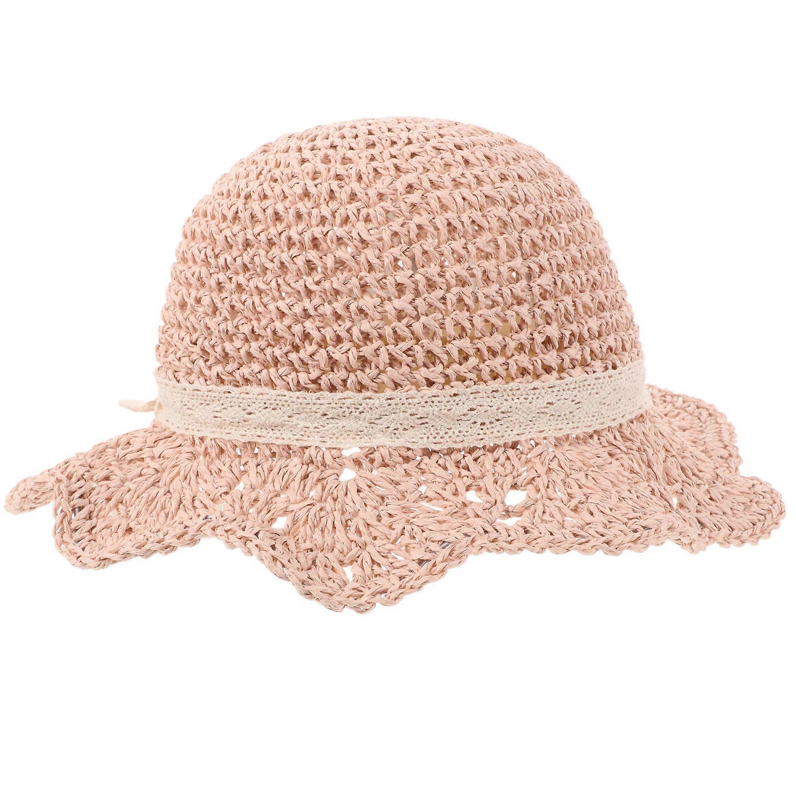 Toddler Straw Sun Hat Adjustable Lightweight Braided Hat for Kids Pink