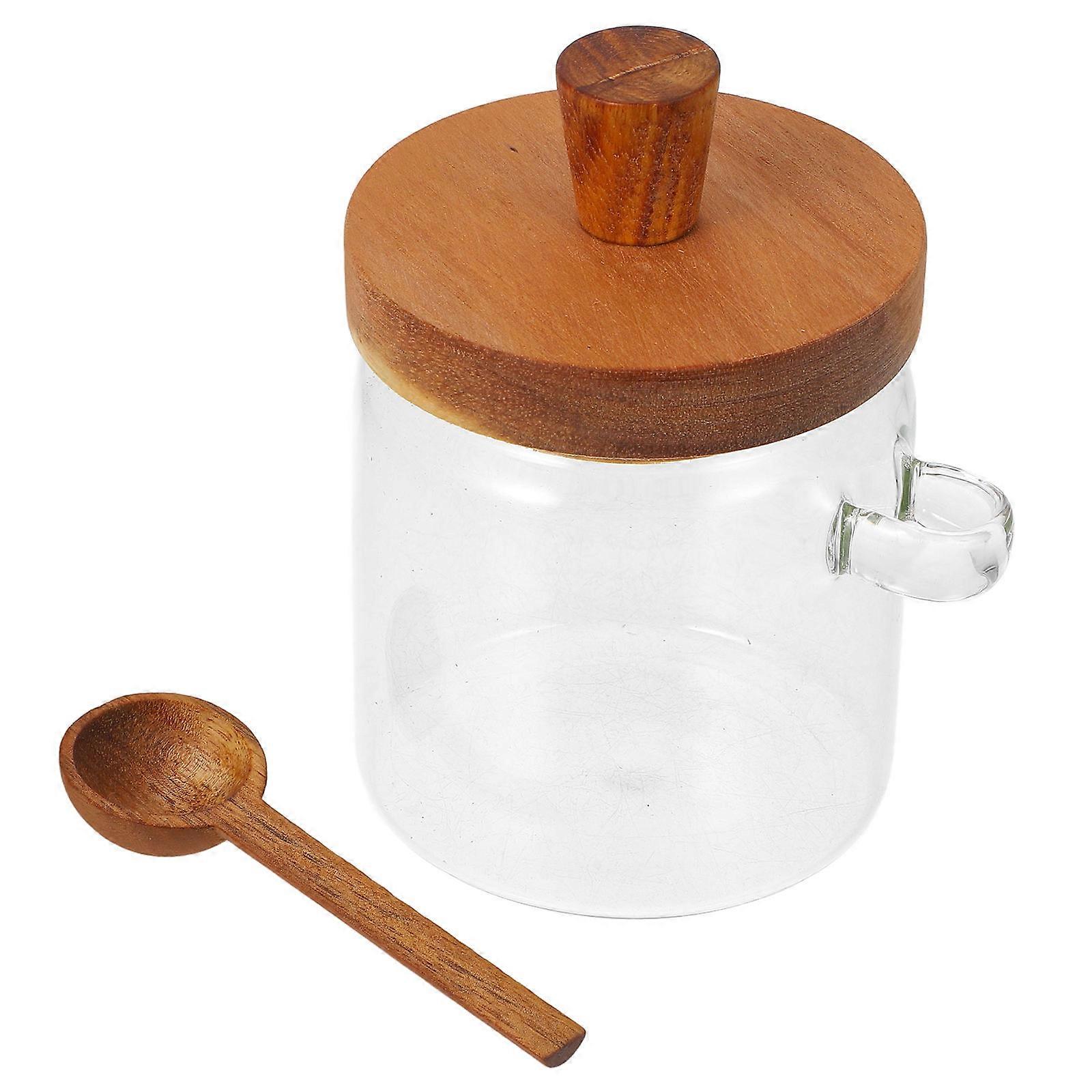 Honey Glass Jar Honey Pot With Dipper Elegant Wooden Lid Design 13.80X9.10X9.10CM Honey Storage Kitchen Use 1 Set