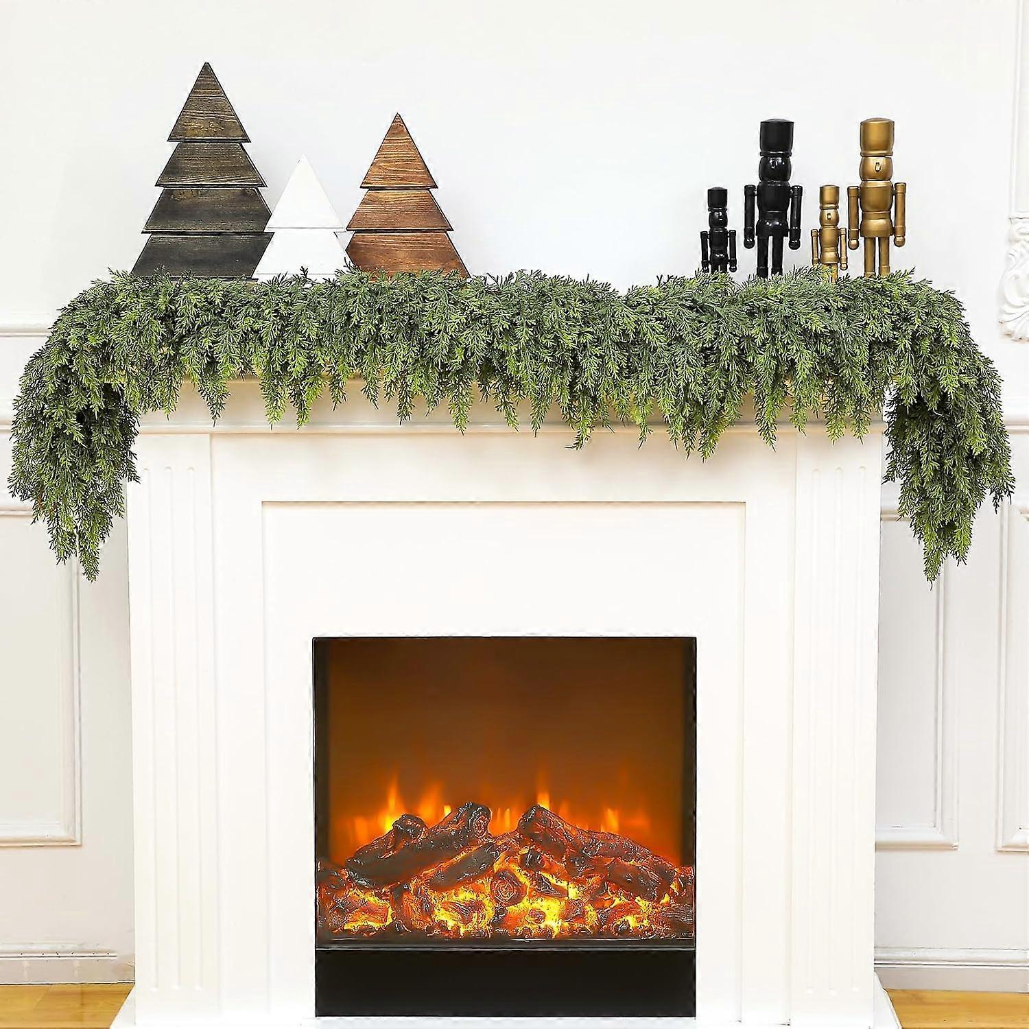 6/9ft Christmas Cedar Garland Artificial Realistic Soft and Thickness Green Faux Pine Vine for Home Fireplace Holiday Decoration