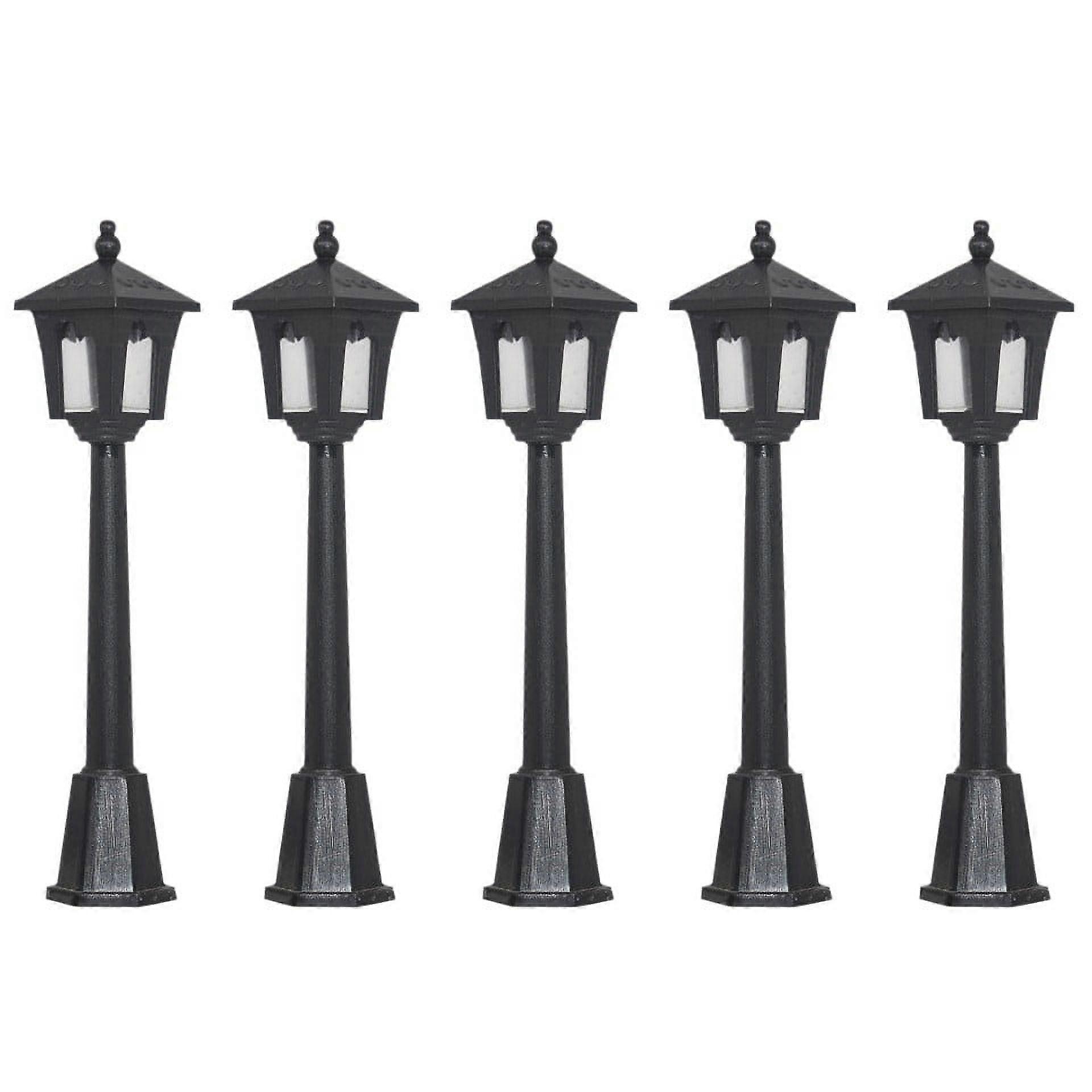 Federra 5 Pack Mini Street Lamp, Compatible with Model Railroad, Doll House, Fairy Garden - Black Outdoor Channel Lamp Post for Miniature Landscape