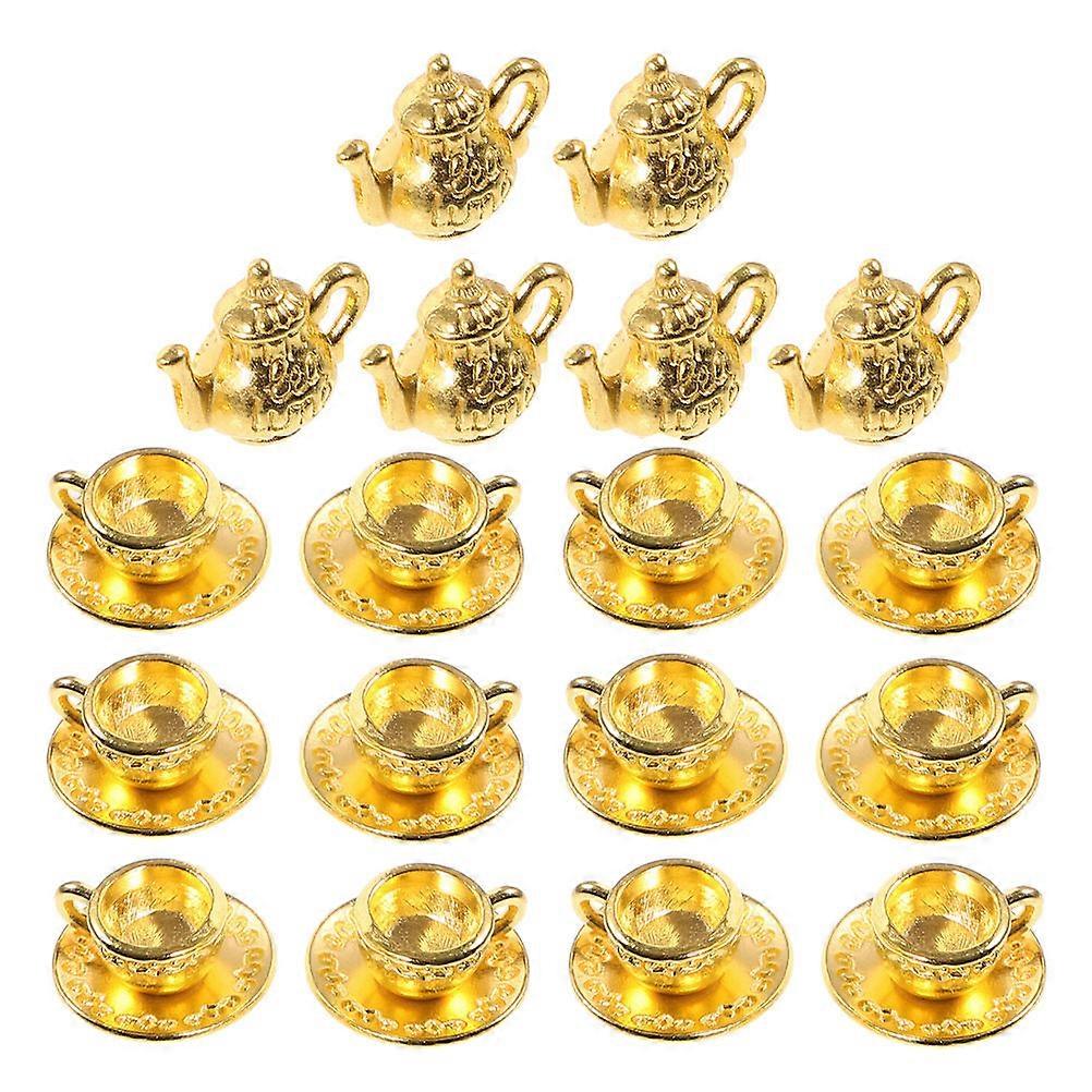 Miniature Tea Cup Set Golden Dollhouse Kitchen Accessories 6Sets