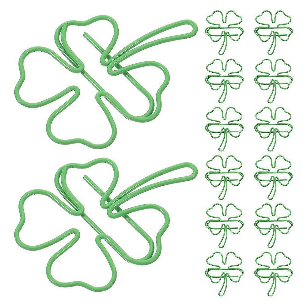 Cute Four-Leaf Paper Clips Aesthetic Design Workspace Green 3.60X2.80X0.20CM Securing Documents 30Pcs