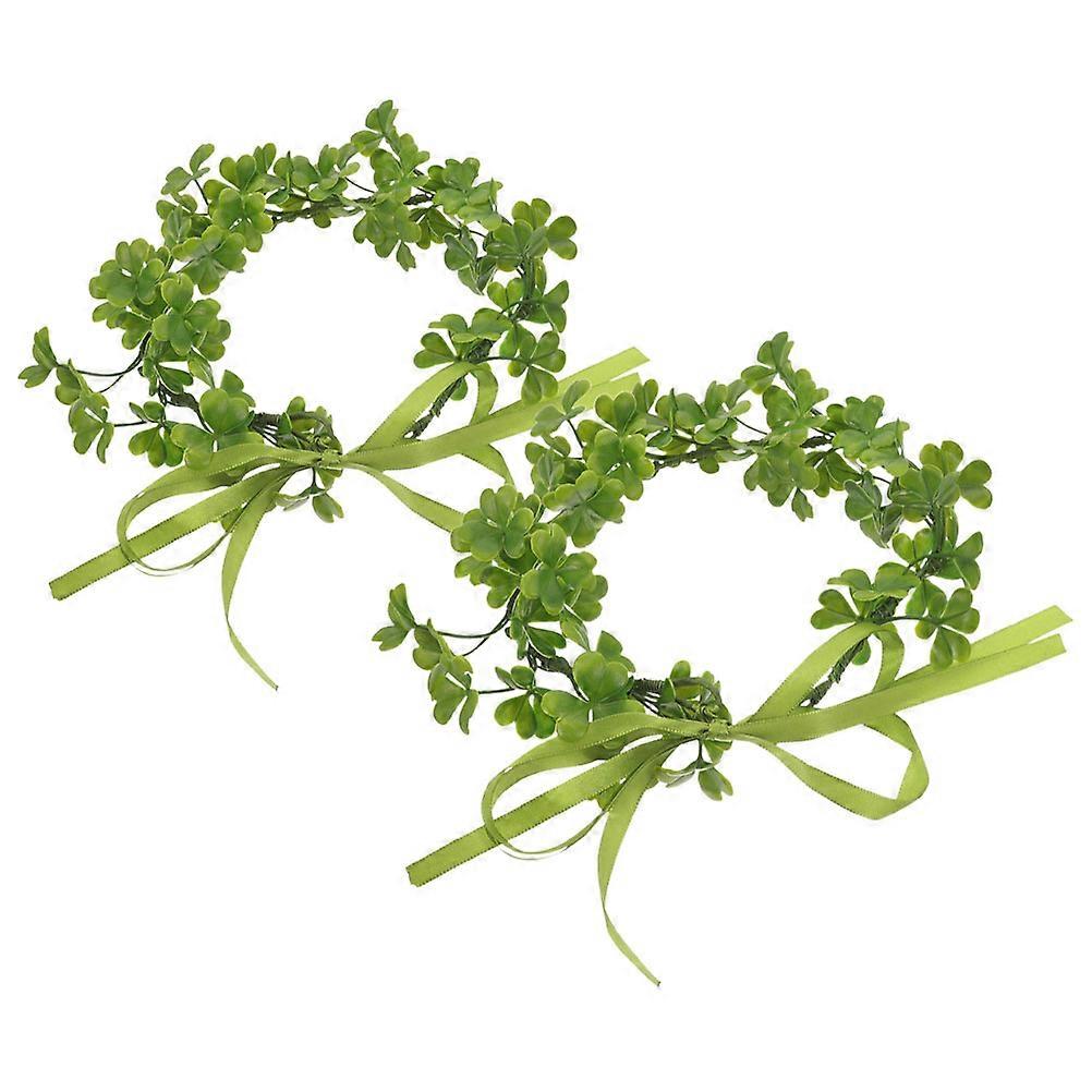 Shamrock Headpiece Wreath Plastic for Decoration 2Pcs Green Leaf Tiara
