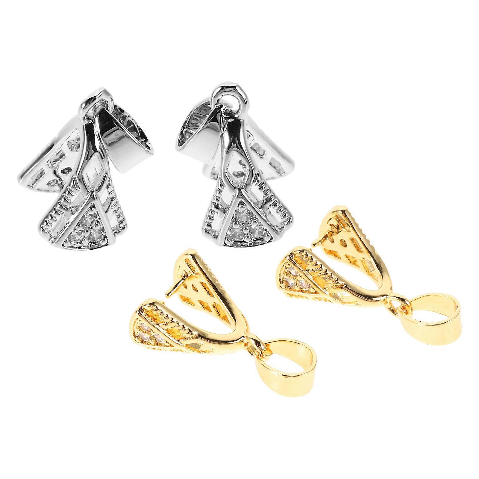 4Pcs Pinch Bail Clasp for Jewelry Making DIY Copper Pendant Connectors Zircon