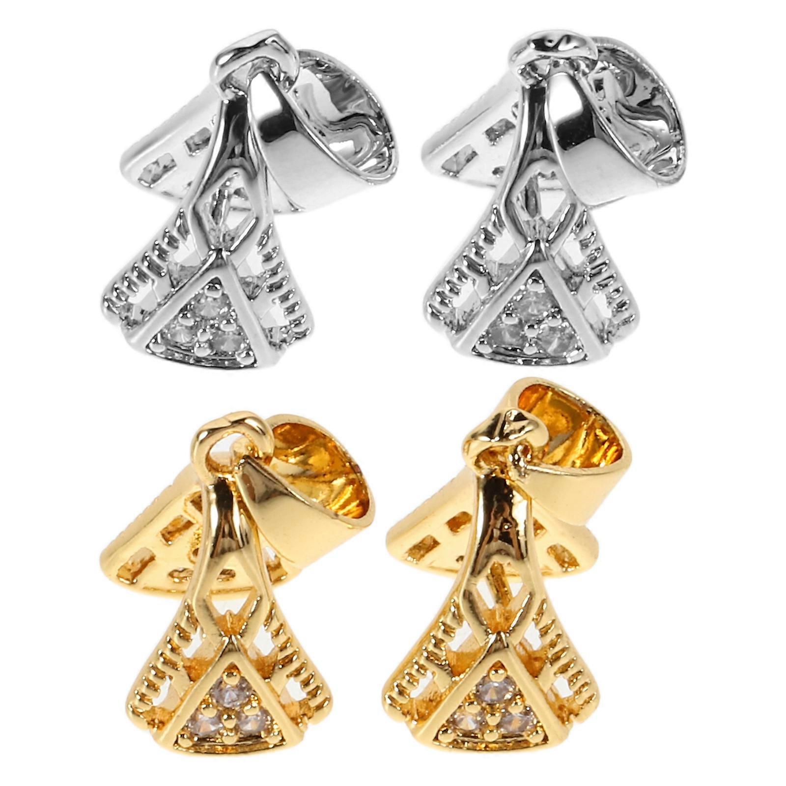 DIY Jewelry Making 4Pcs Pinch Bail Clasp Copper Pendant Connectors with Zircon