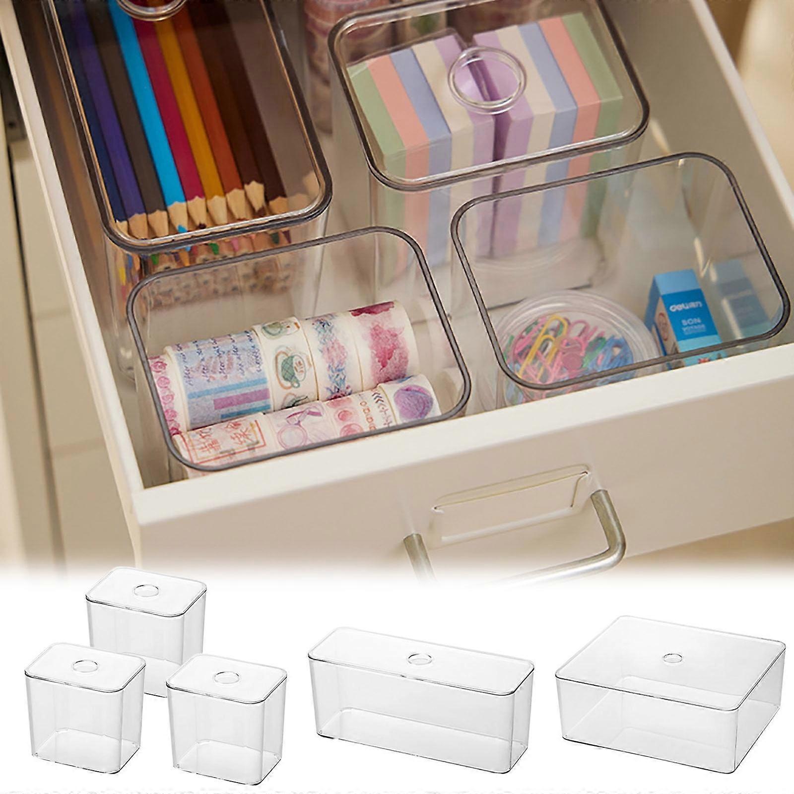 Cailmei 5Pc Transparent Storage Box with Lid, Desktop Drawer for Cosmetics, Underwear, Home Partition, High-End Organizer
