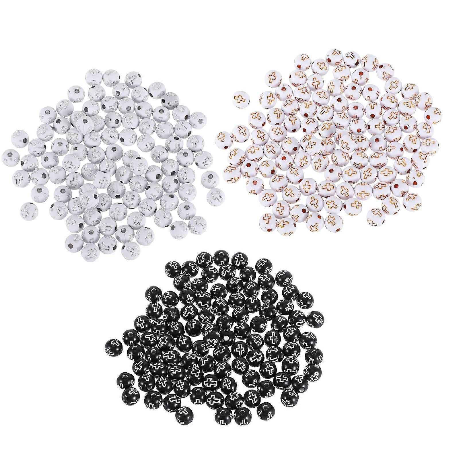 Christian Round Beads Cross Pattern Beads for Crafts 300Pcs Pack