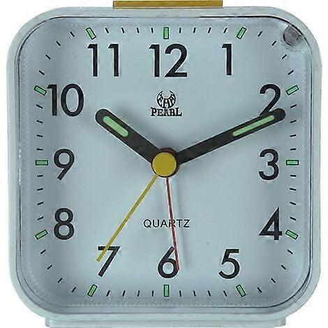 Silent analog alarm clock without ticking, gentle wakeup, beep, volume increase, snooze and light functions, battery powered, easy setting, white