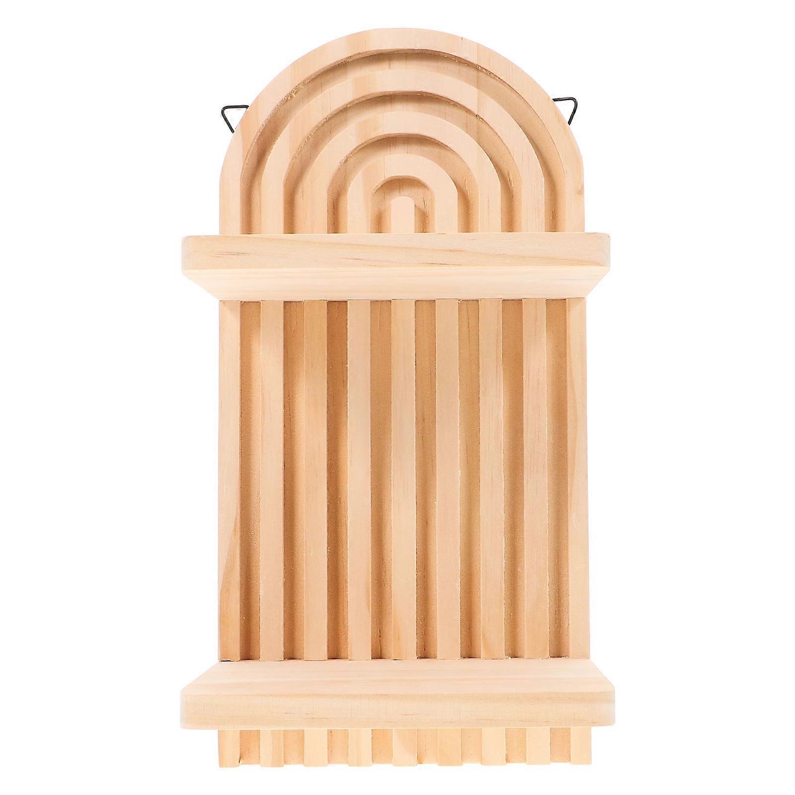 Wooden Wall Hanging Shelf for Storage Double Layer Khaki Design