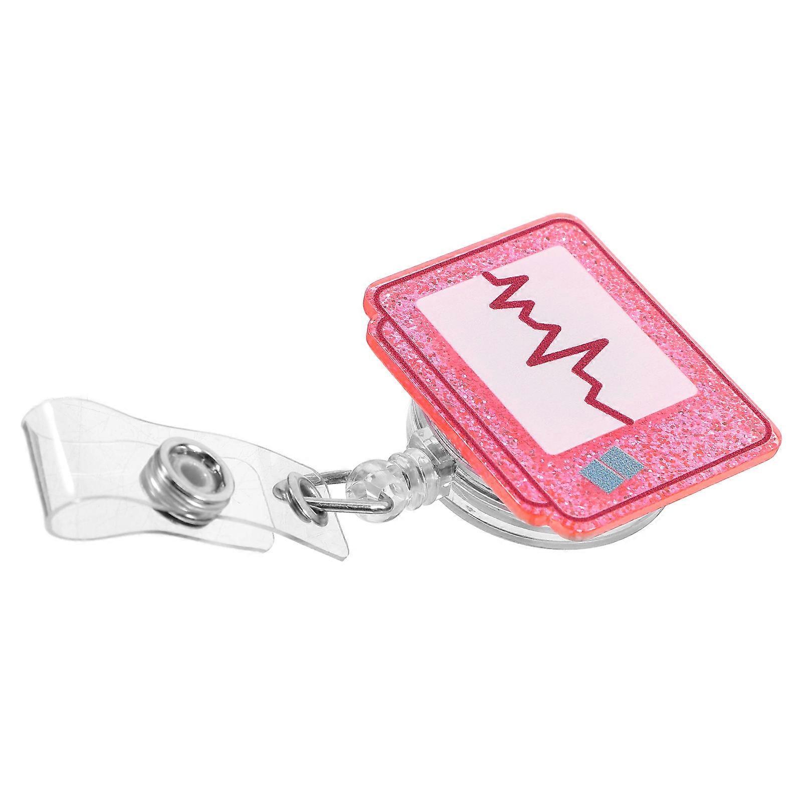 Pink Heartbeat Badge Buckle for Nurses with Retractable Id Holder