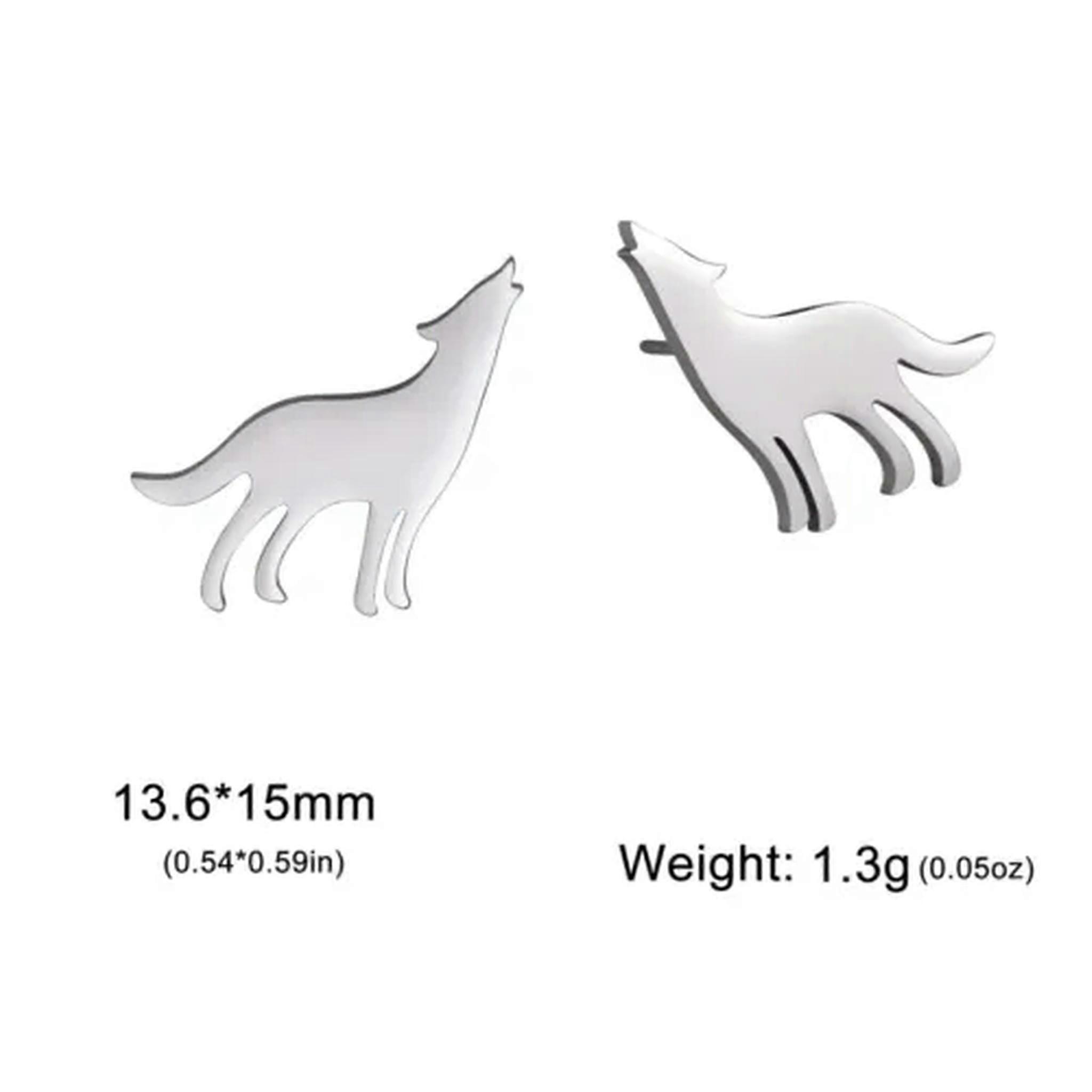 RSAMD Stainless Steel Wolf Earring for Women Animal Howling Wolf Ear Studs Jewelry-Steel