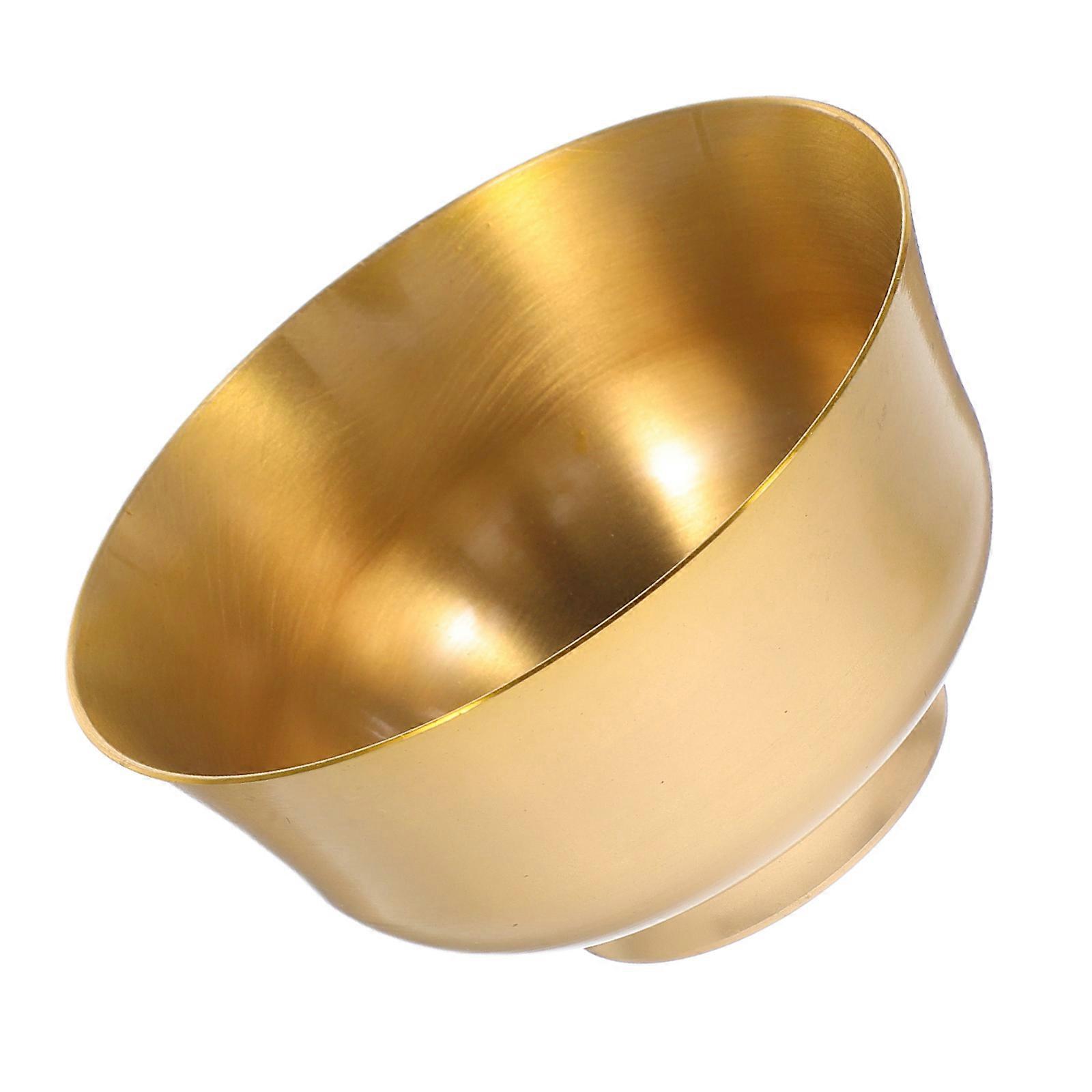 Crafted from brass, this polished treasure bowl exudes elegance and sophistication. Its smooth surface and hue make it a stunning decorative piece for altars, prayer rooms, or living spaces. Designed for versatility, it can hold water, offerings, or serve as a centerpiece to enhance spiritual practices. Features -Color:Golden -Material:Brass -Size:7.00X7.00X3.50cm/2.75X2.75X1.38in -Fine craftsmanship: made of brass, this incense bowl features a gold finish that enhances the artistic ambiance of any space -Smooth surface design: the polished surface is easy to clean and maintain, allowing it remains as good as new with minimal upkeep -Versatile use: ideal for altars, living rooms, or offices, it adds a touch of serenity and peace to any environment -Water bowl for rituals: designed to meet religious ceremony needs, it conveys devotion and respect -Symbol of prosperity: its unique shape symbolizes wealth accumulation, bringing good fortune to homes or businesses Package list: 1 x offering bowl