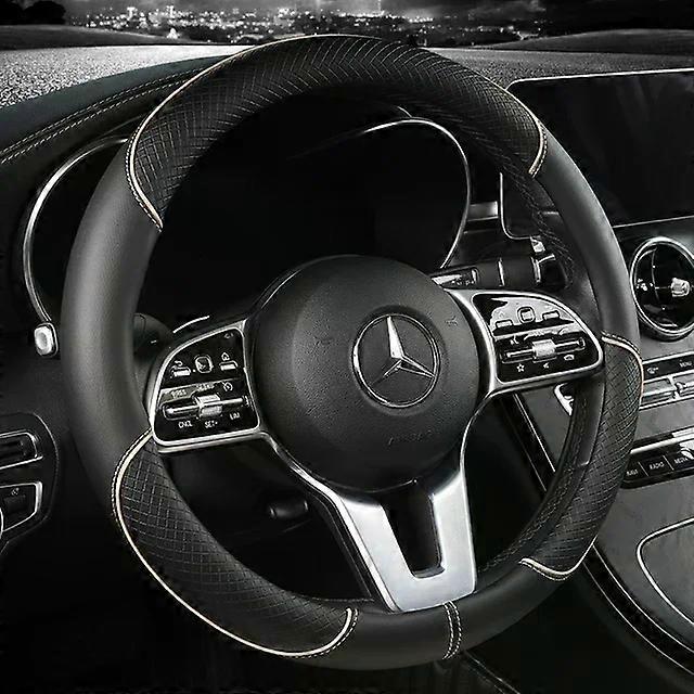 All Seasons Leather Diamond Steering Wheel Cover Universal Fit for 14 .5-15 Inch Durable Leather Cover Anti-Slip Veins Design
