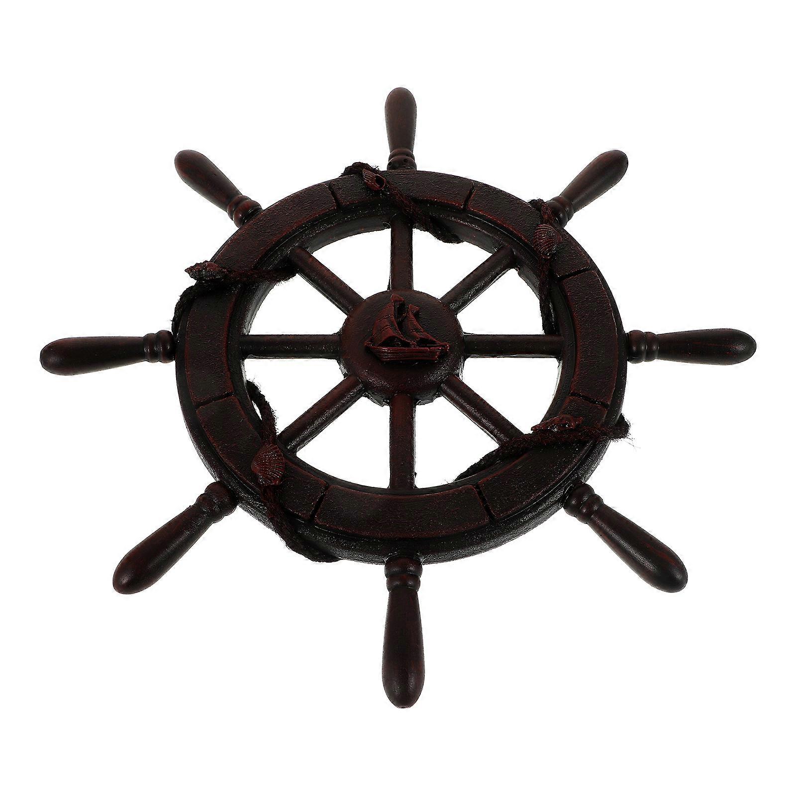Coffee Nautical Wooden Wall Decor for Home Beach Coastal Art with Ship Steering Wheel 12.5 inches