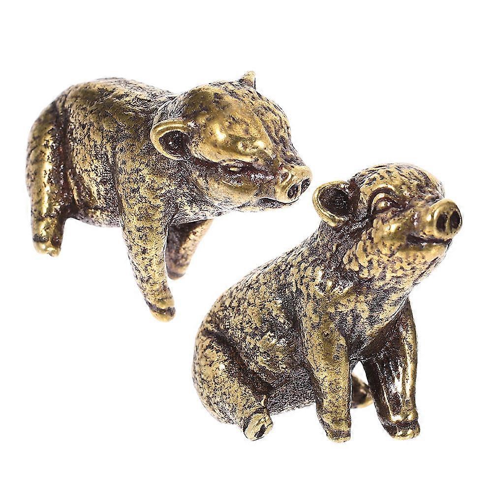 Brass Pig Craft Chinese Zodiac Pig Statues Vintage Small Animal Sculptures Light Brown 2.70X2.30X1.80CM Home Office Decor 2Pcs