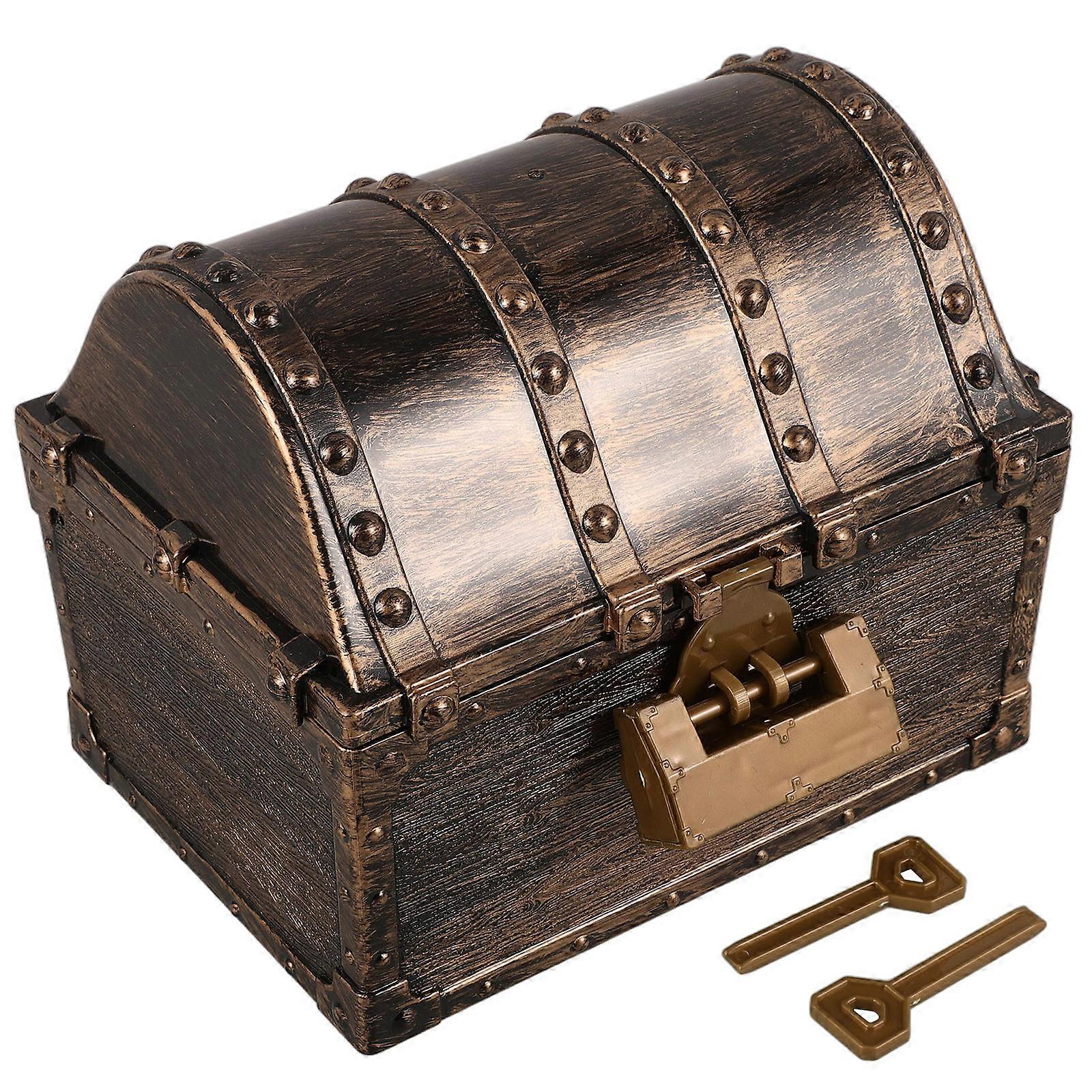 Pirate Treasure Chest Plastic Jewelry Box for Storage with Lid Coffee Tone