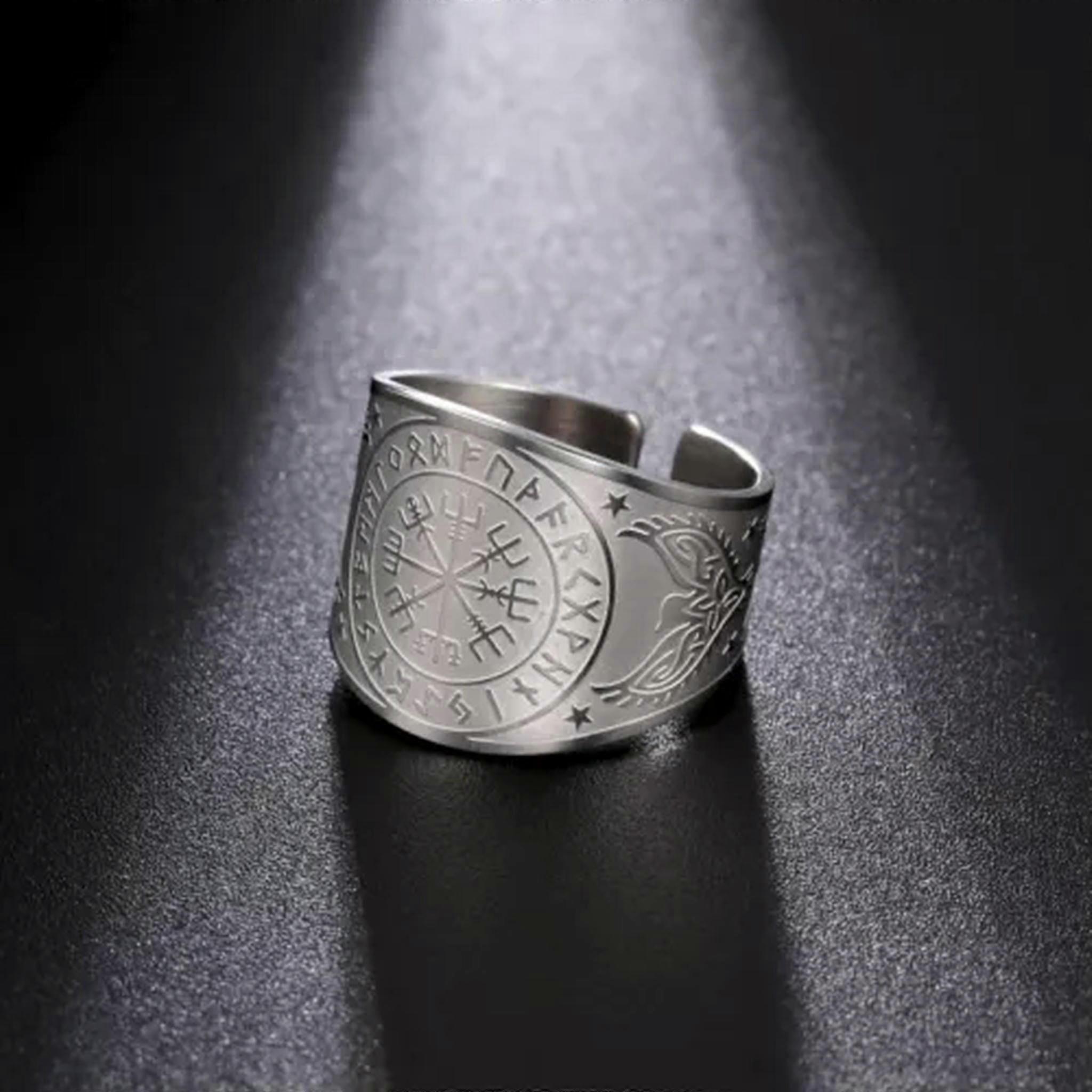 RSAMD Viking Compass Ring Nordic Rune Amulet Stainless Steel Jewelry Gift-9-Vegvisir Steel 2