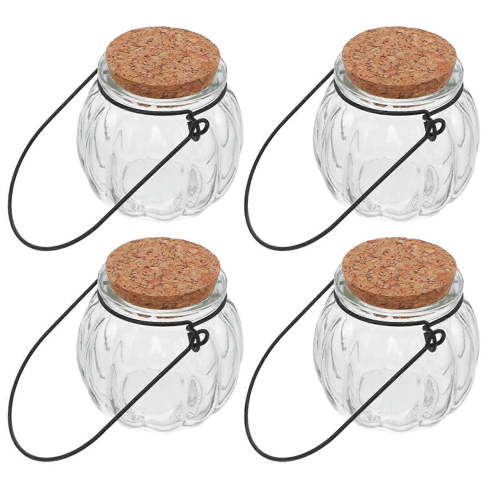 Hanging Glass Jar Clear Pumpkin Shape with Iron Decorative Use for Home Decor Gift Giving 4Pcs