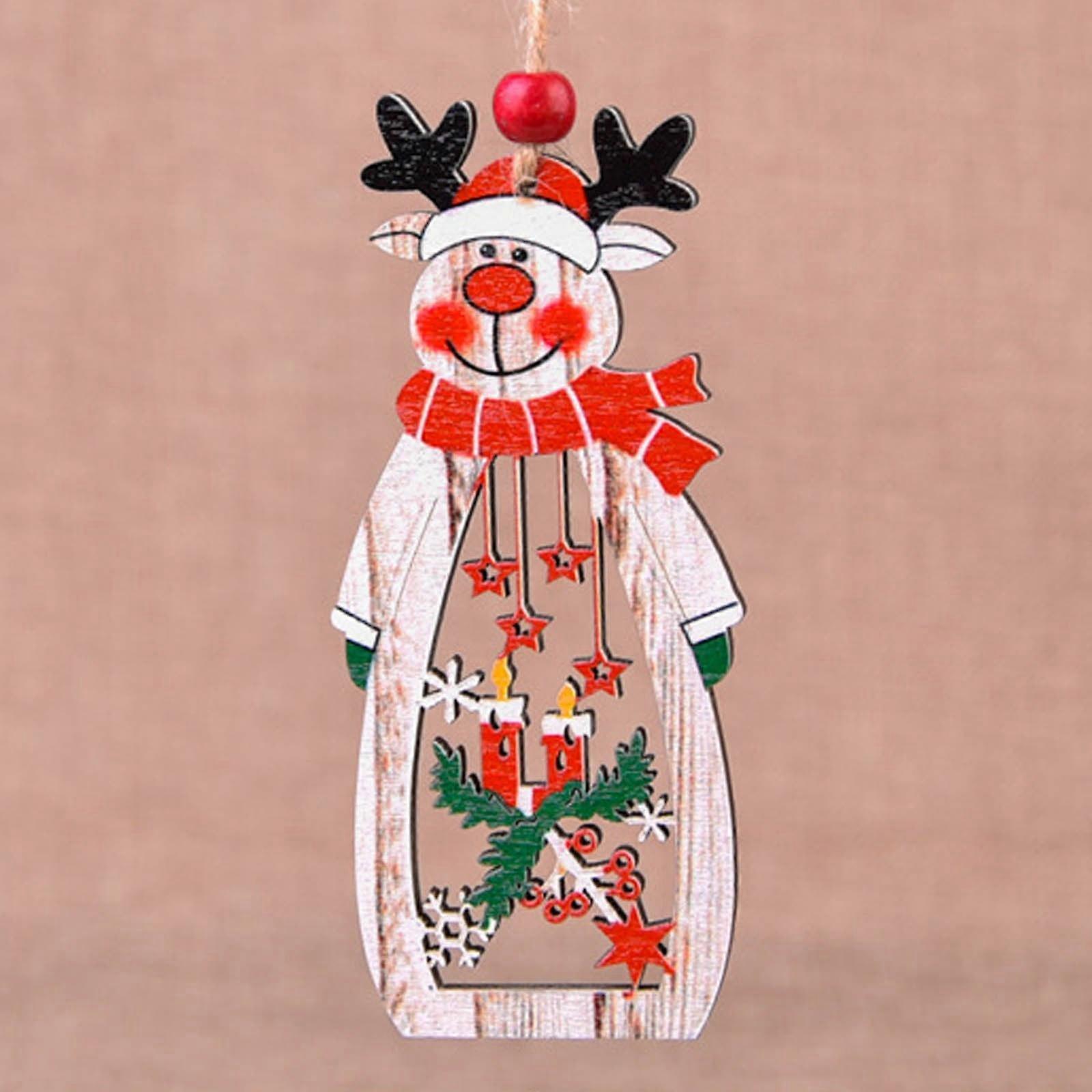 Lmueinov 1PC Christmas Decorations Wooden Santa Claus Hollow Pendant Decorations Christmas Savings