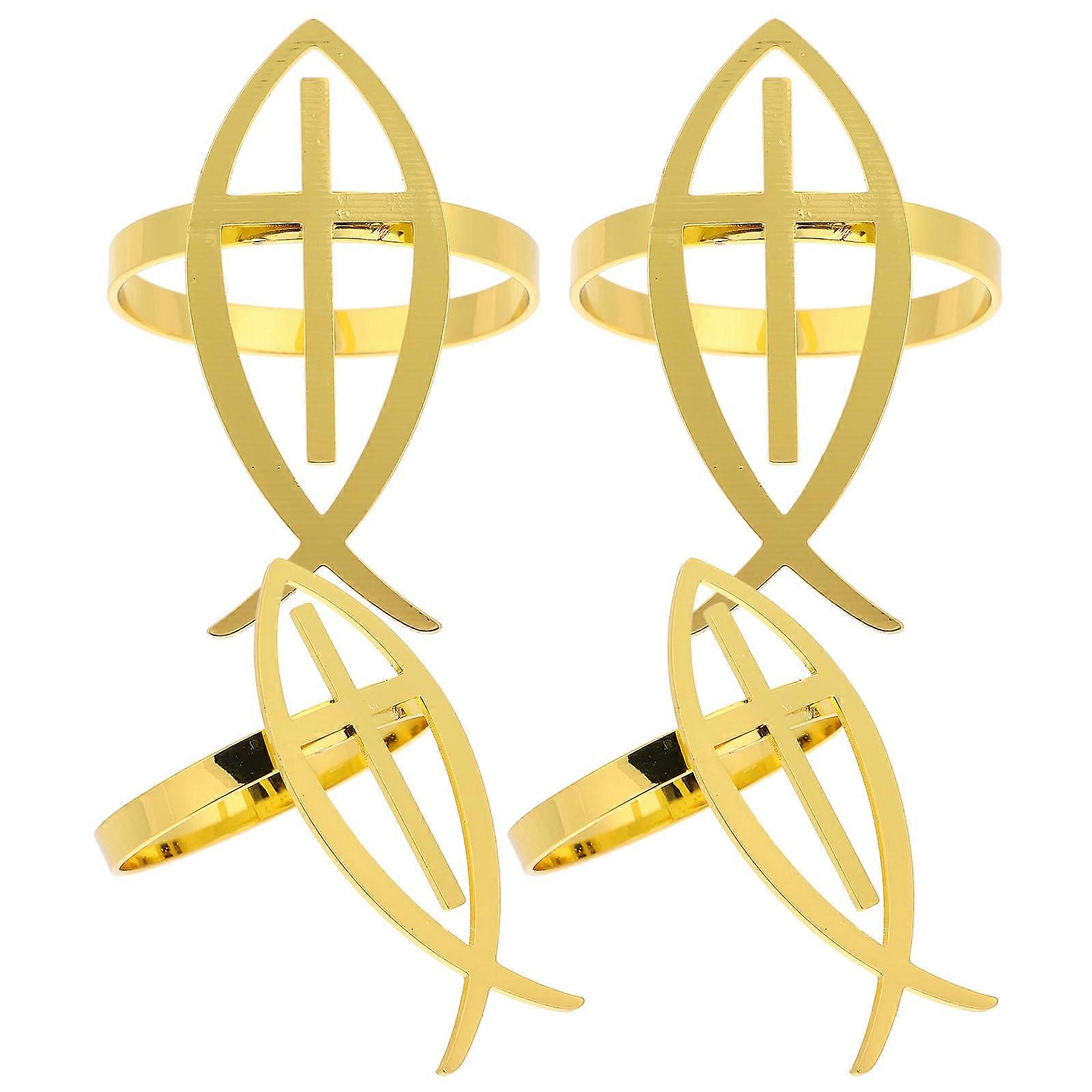 Cross Napkin Rings Zinc Alloy for Decoration 4Pcs Golden Dining Table Holder