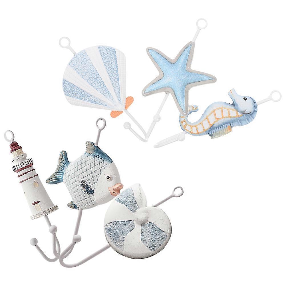 Villa Hooks Coastal Wall Hooks Home Decor Mediterranean Style Resin Hanging 6Pcs