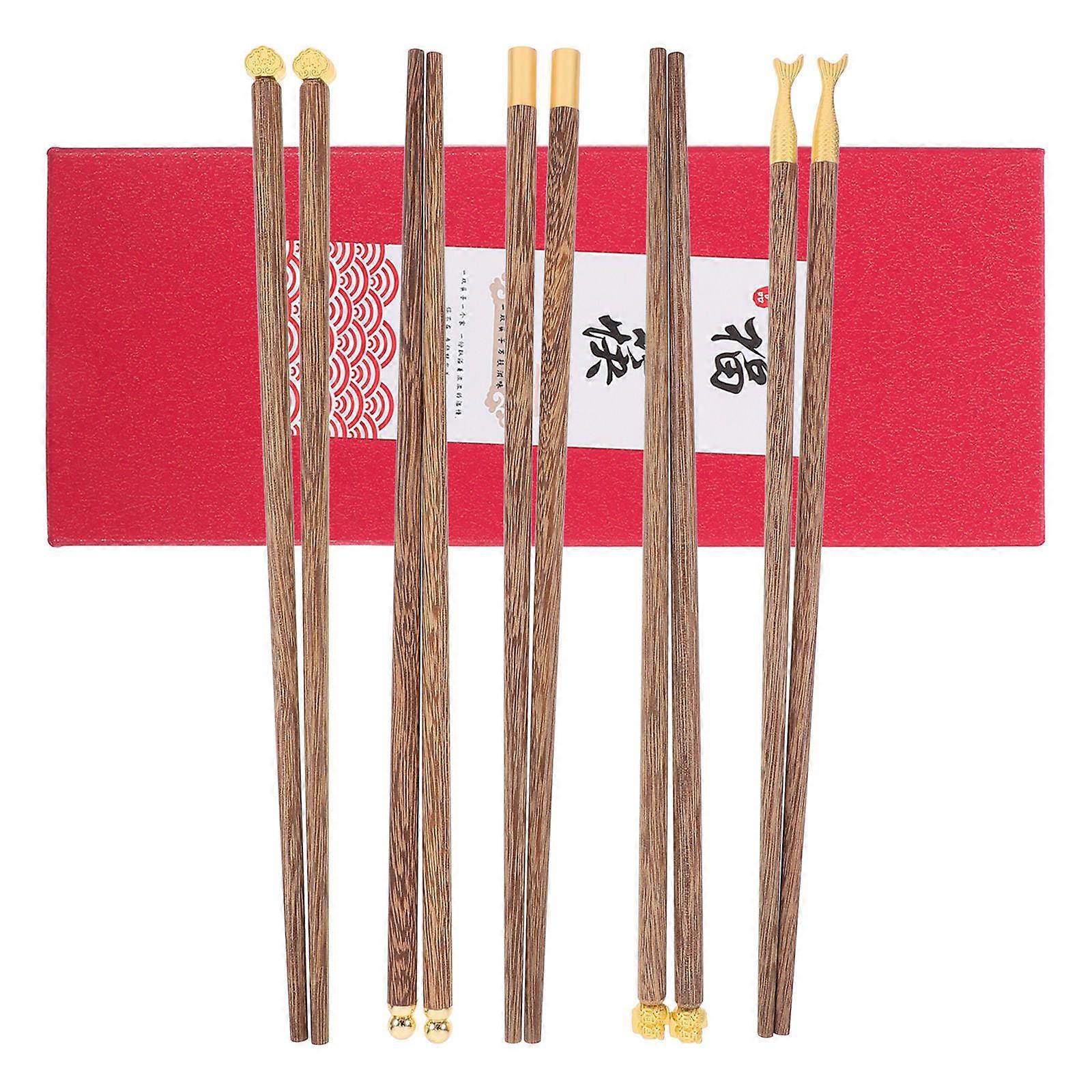 Fish Tail Chopsticks Chinese Chopsticks for Eating 5Pair Wooden Set