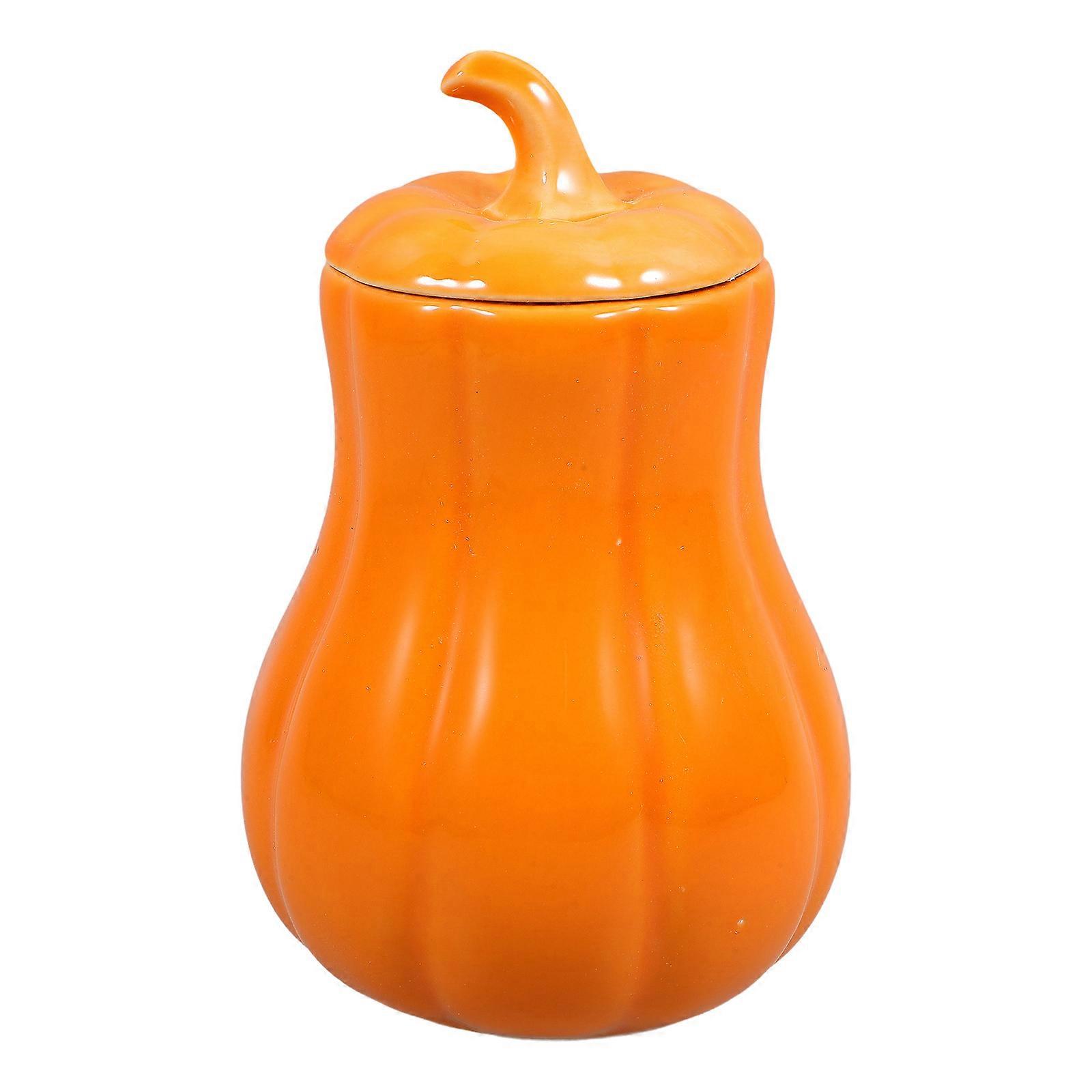 Orange Ceramic Spice Jar Pumpkin Shaped for Tea Storage Jar