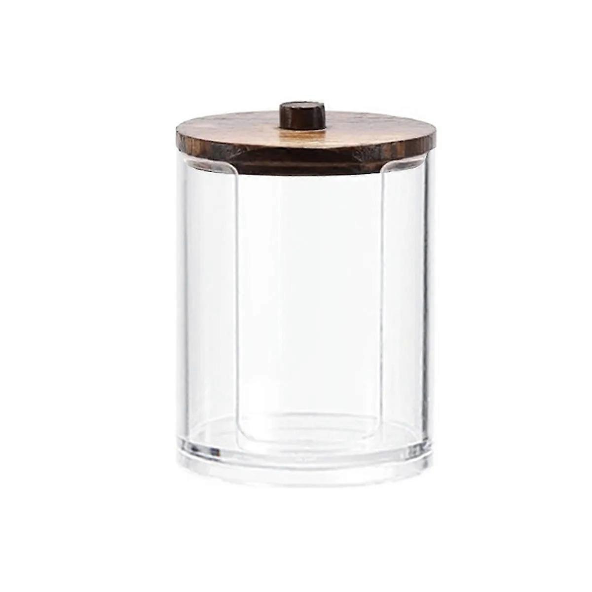 Transparent Carbonized Wood Cotton Swab Box Plastic round Small Storage Case for Jewelry Accessories And Cosmetic Cotton