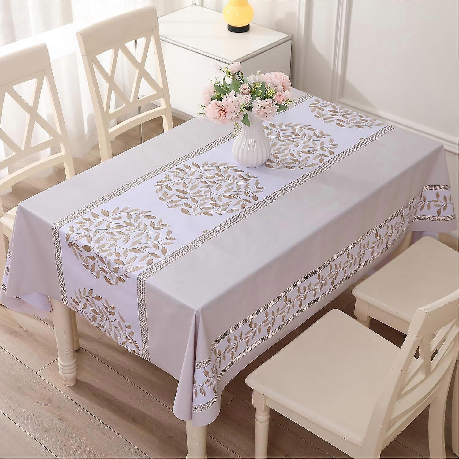 Waterproof Tablecloth PVC Vinyl Plastic Ironable Tablecloth Table Cover 140x180cm Beige Leaves