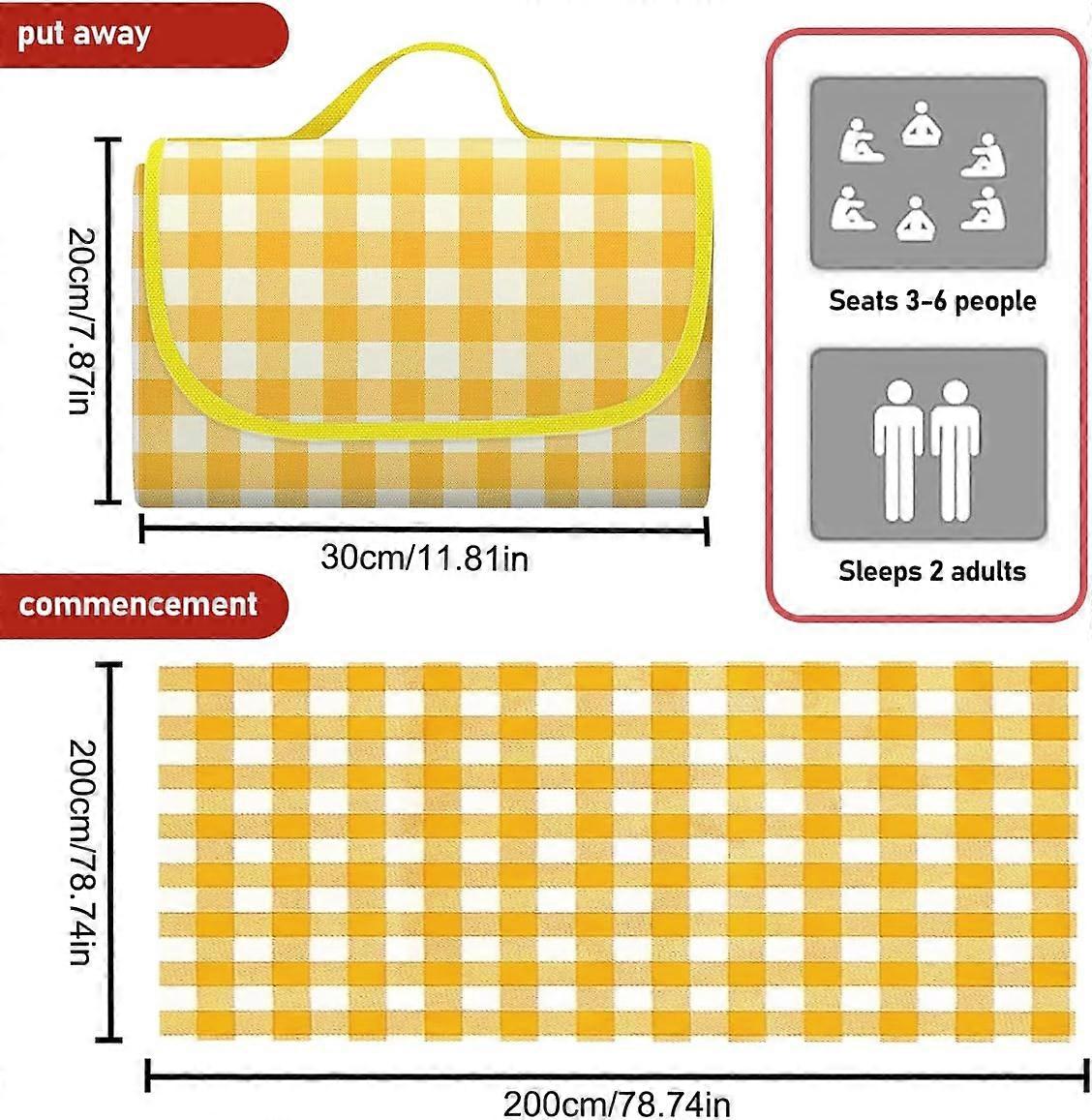 Picnic blanket 200x200Picnic clothBeach matWaterproofFoldable picnic mat with handle Yellow