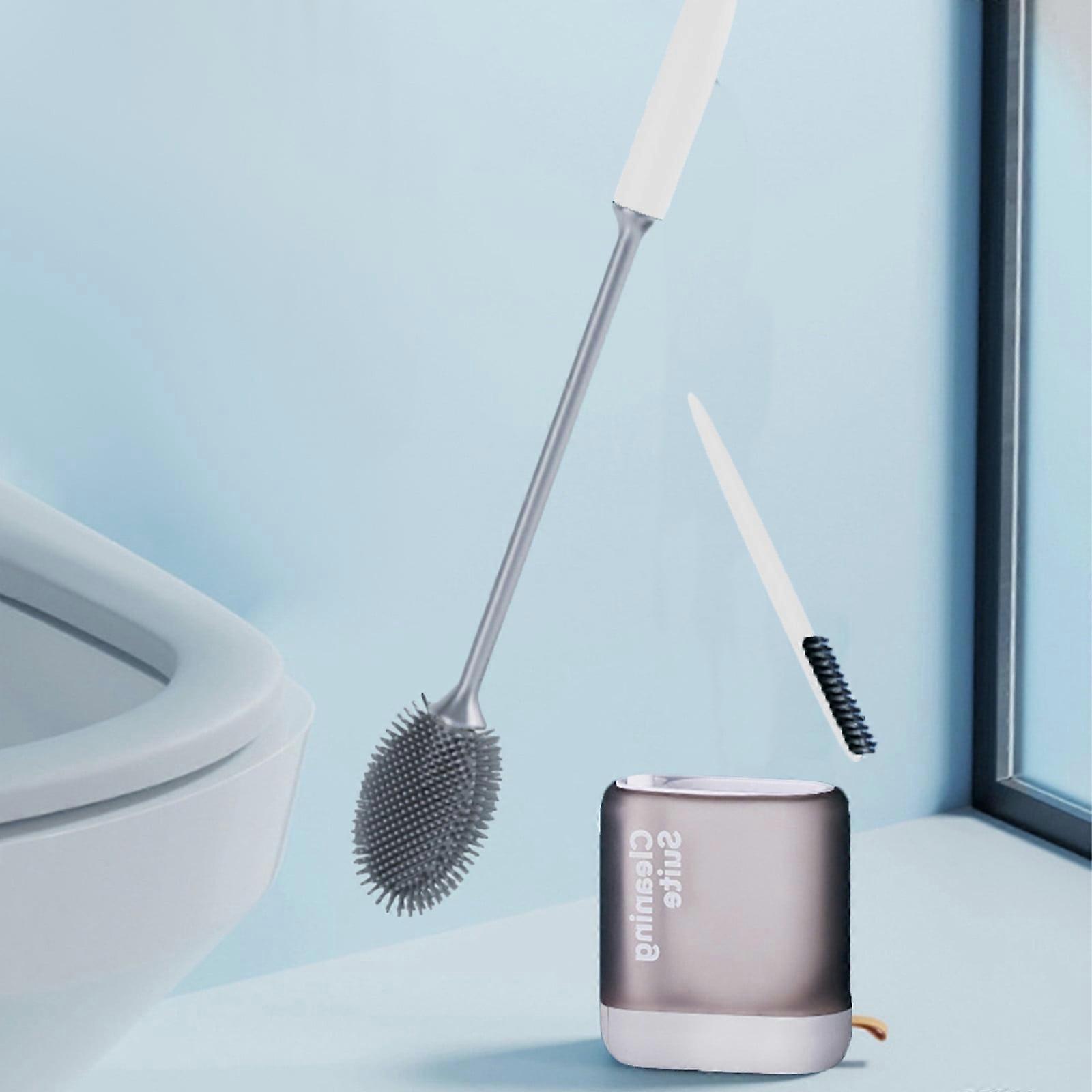 TUOBARR Toilet Bowl Brush & Holder with 2 Type Brush (Rubber + Slit), compatible with standard toilets