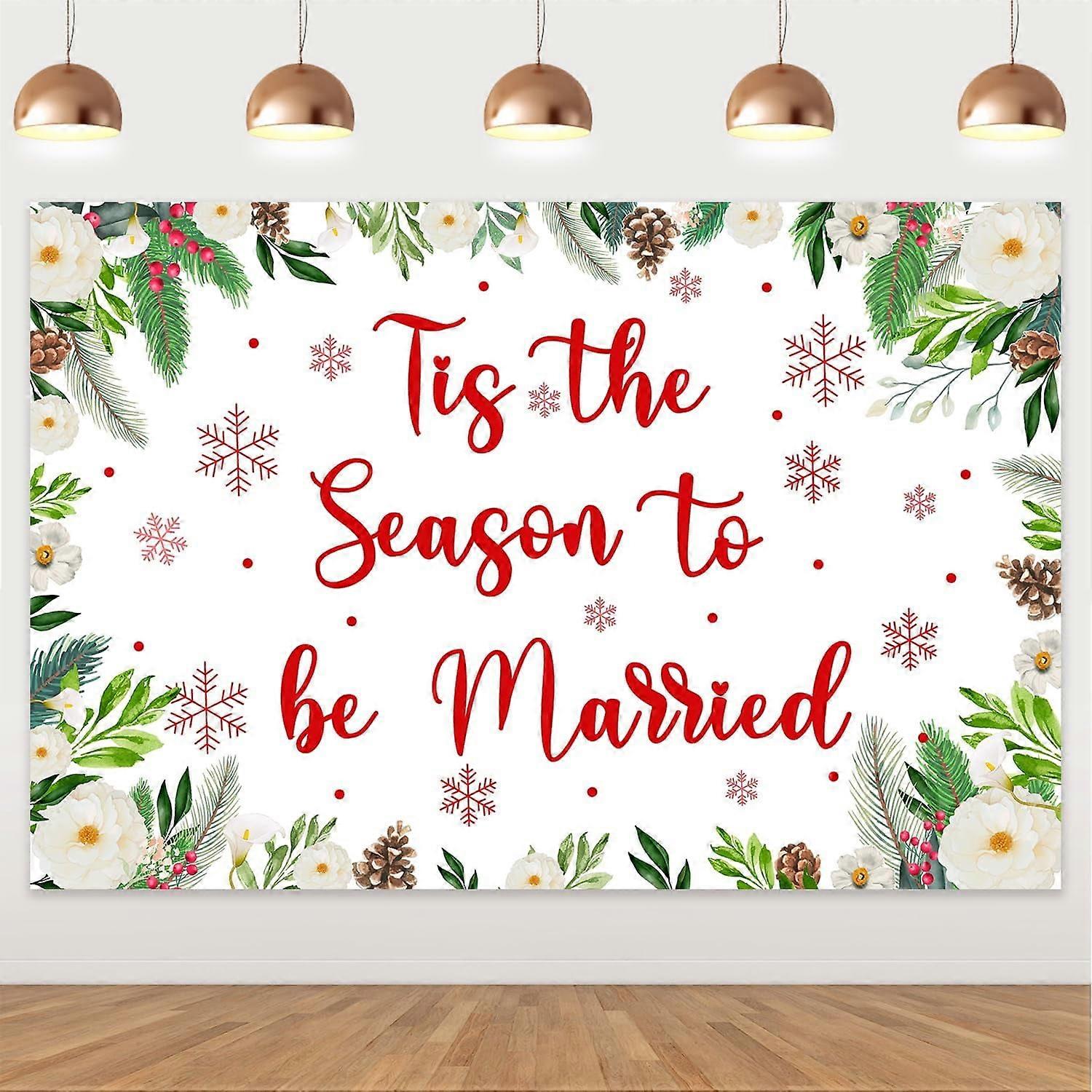 Custom Christmas "Tis The Season to Be Married" Backdrop, Red Green Plants, Pinenuts, Floral Snowflakes, Compatible with Winter Wedding Party Decor,