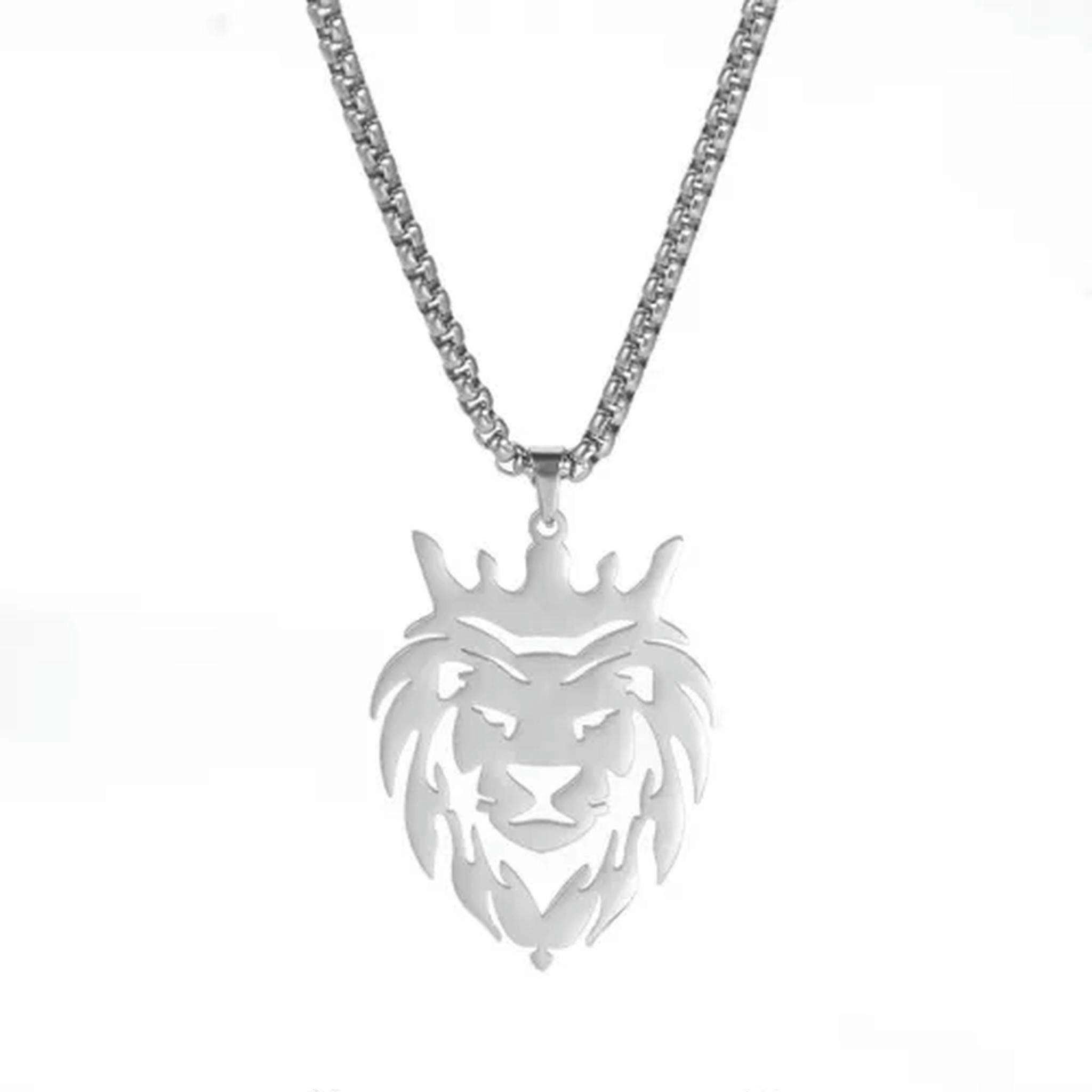 RSAMD Lion with King Crown Necklaces for Men Animal Stainless Steel Pendant Necklace-Steel Welcome to our jewelry emporium that's brimming with dazzling options for every style seeker. For the lovely ladies, we have an array of enchanting pieces. From the dainty necklaces that delicately adorn your collarbone to the elaborate rings that make a bold statement. There are bracelets that add a touch of grace and earrings that enhance your beauty. But don't think we've forgotten about the gentlemen! We have a selection of masculine and stylish accessories too. Sturdy rings for a touch of rugged charm, sleek bracelets that exude sophistication, and understated necklaces that add a hint of refinement. Our collection combines timeless classics with modern trends, crafted with precision and using top-quality materials. Whether you're looking for a piece to wear on a daily basis or for a special event, we've got you covered. So, step into our world of jewelry and discover that perfect piece that reflects your individuality, no matter your gender! Suitable for Gifting Fit for Every Occasion 100% New and of High Quality Crafted from Professional-Quality Materials Easy to Pair and Wearable at All Times and Places