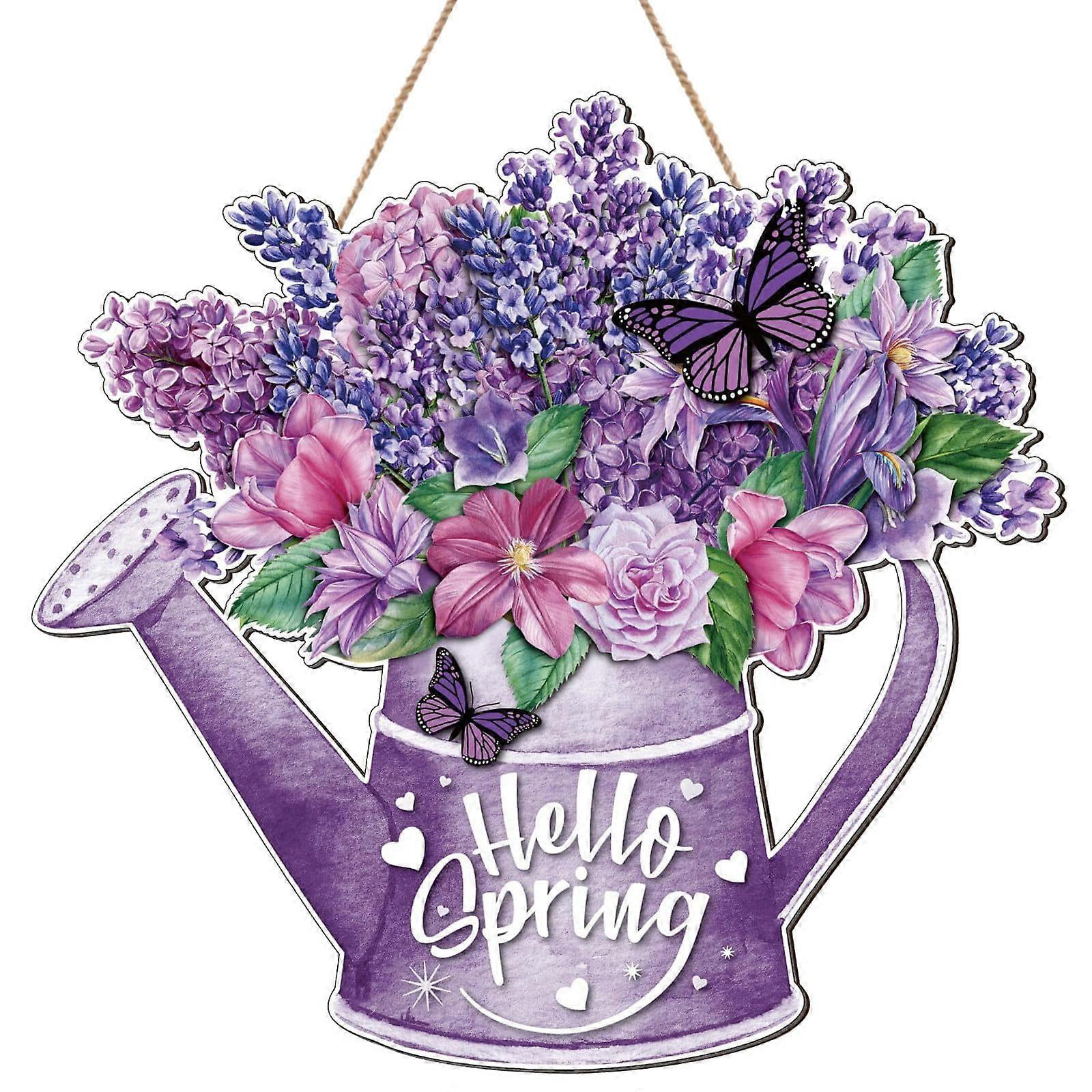 Yakbaofuo Door Hanging Decoration, Purple Flowers Spring Sign, Compatible with Country Wood Wall Decor, Easter Party Outdoor Interior Front Door