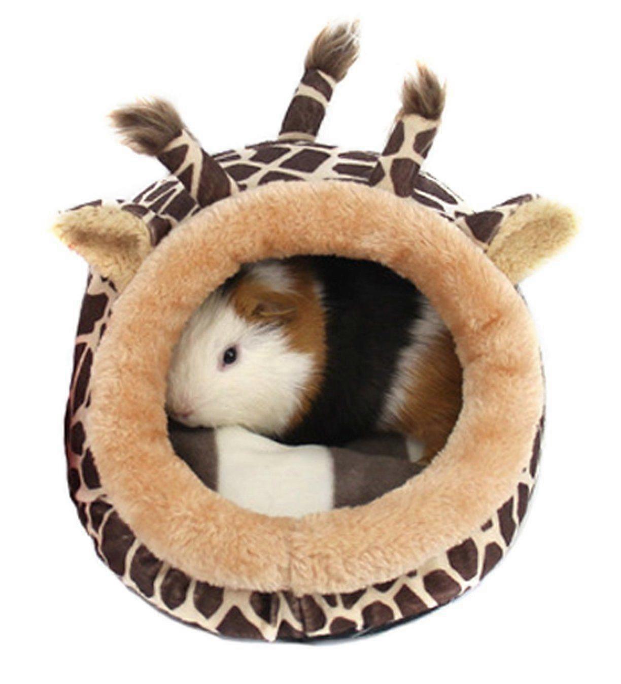 Soft Plush Animal Den Pet Bed with Removable Cushion for Hamster Hedgehog Guinea Pig Baby Cat (Giraffe, L)