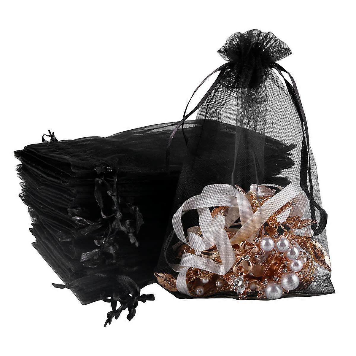 100 Medium Organza Gift Bags Black Jewelry Bags Sheer Drawstring Bags, Mesh Candy Gift Bag (10 x 15CM, Black)