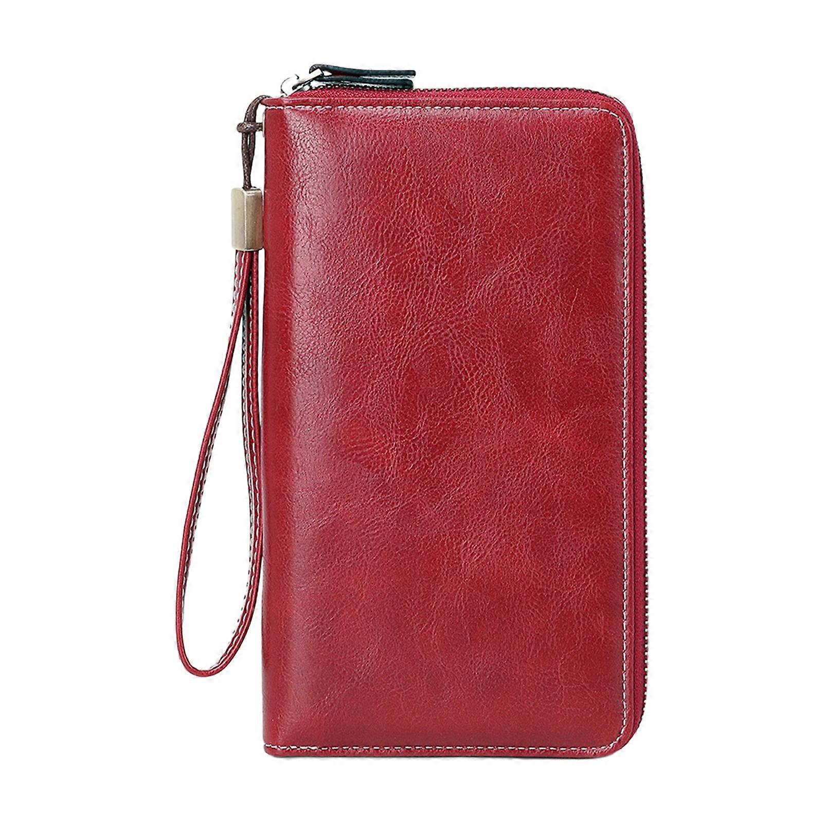 Blocking PU Leather Women's Wallet Compact Long Wallets Zippered Coin Purse Change Pocket for Everyday Use and Travel Burgundy