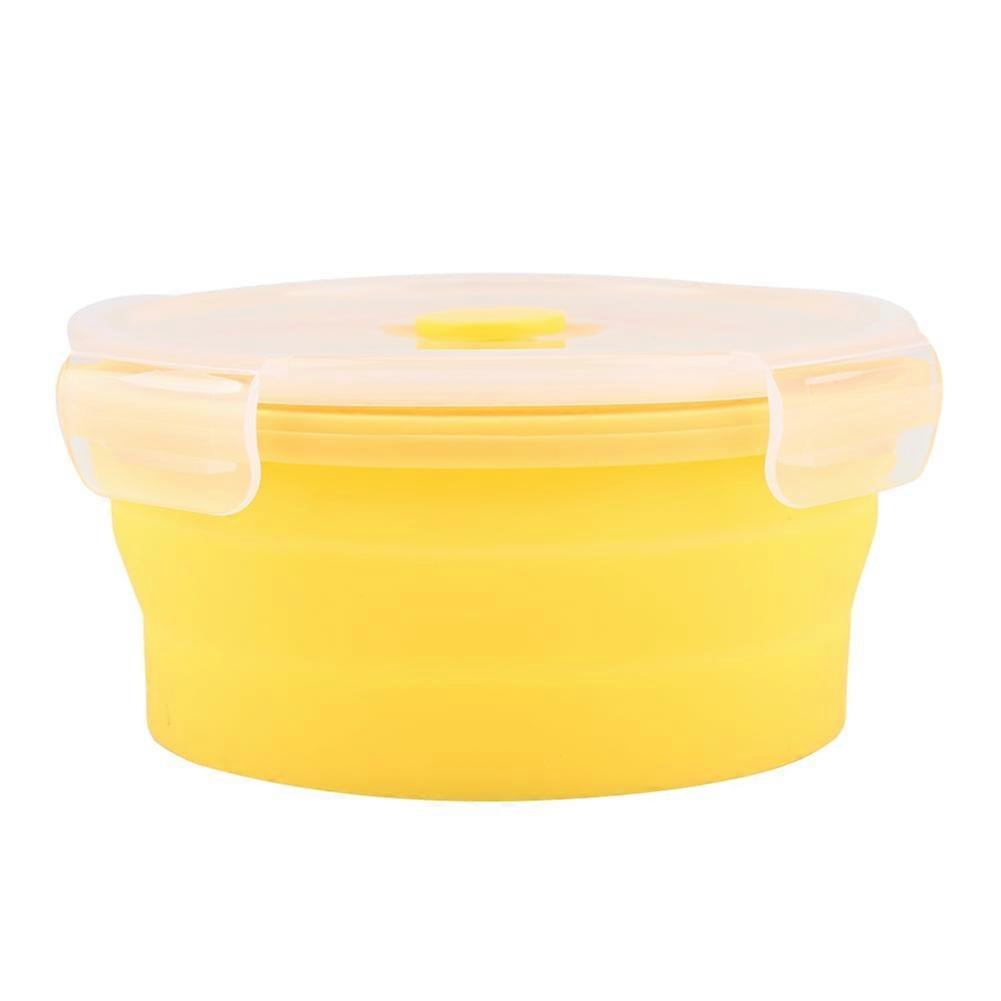 Gonnely Lunch Box 500ml Round Silicone Bento Box Collapsible Lunch Box Microwave Food Container(Yellow)