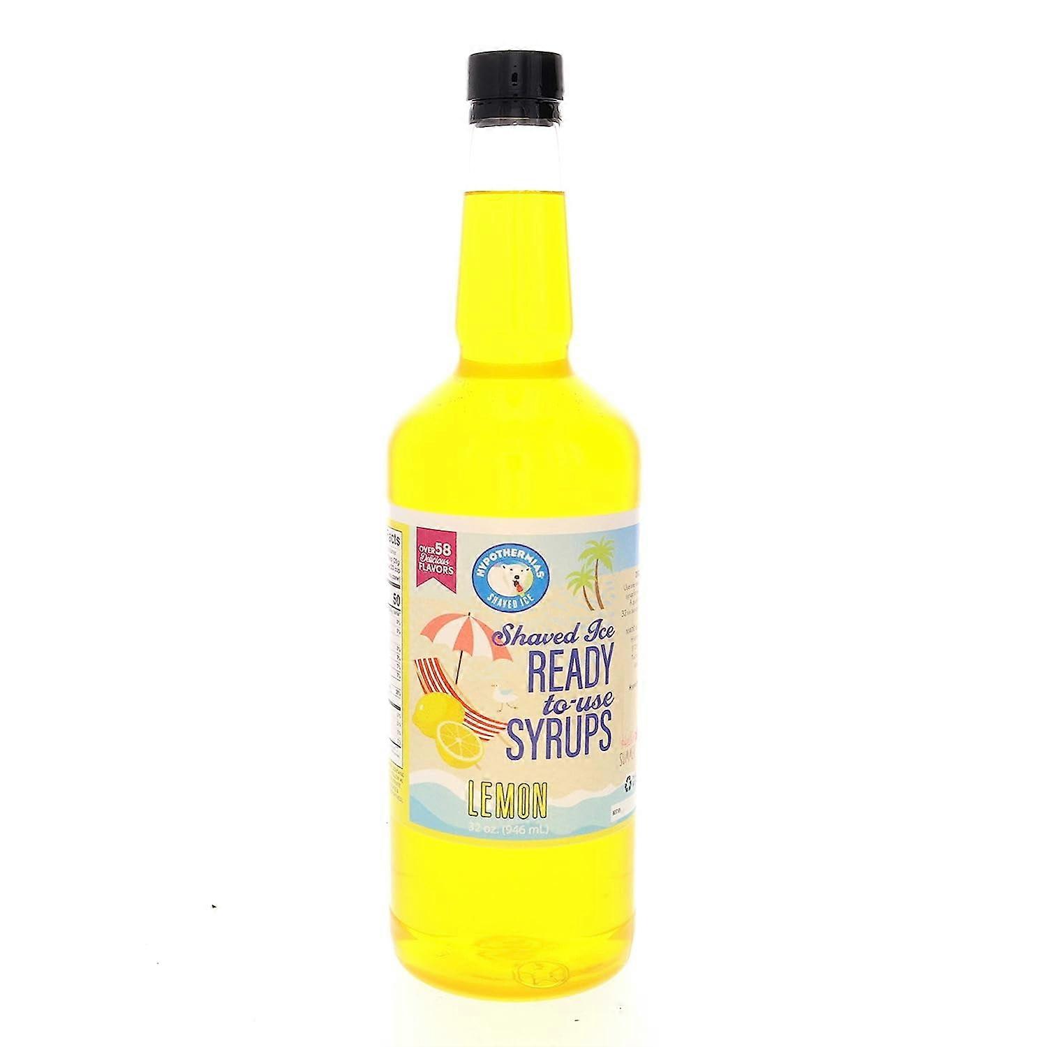 Snow Cone Syrup, Shaved Ice Flavor - Quart (32 Fl. Oz) - Lemon - Non-GMO 100% Pure Cane Sugar, BPA- Plastic Bottle, Ready to Use