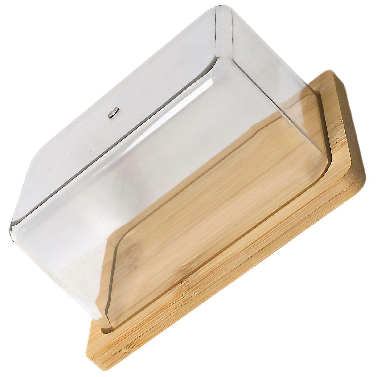 Wooden Butter Dish with Clear Lid for Countertop or Fridge, Durable Base Keeps Butter Fresh 12.5x8.5x6.3 cm