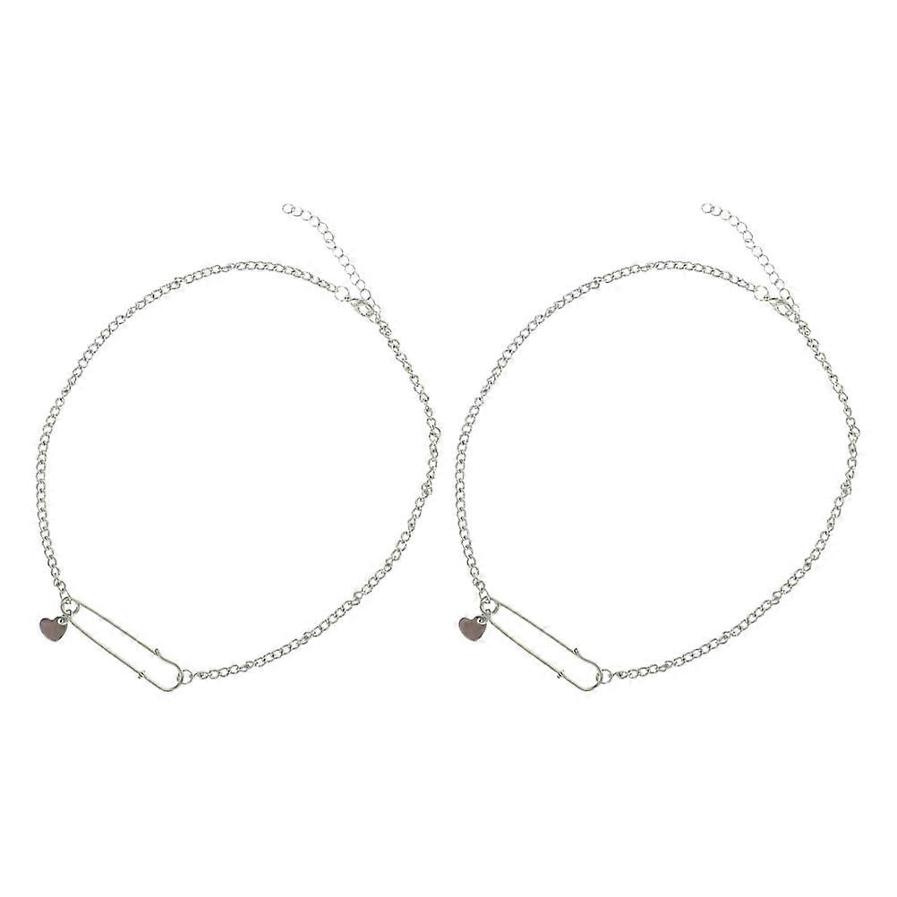 Silver Creative Paper Clip Pendant Necklace for Women 2Pcs Clavicle Chain
