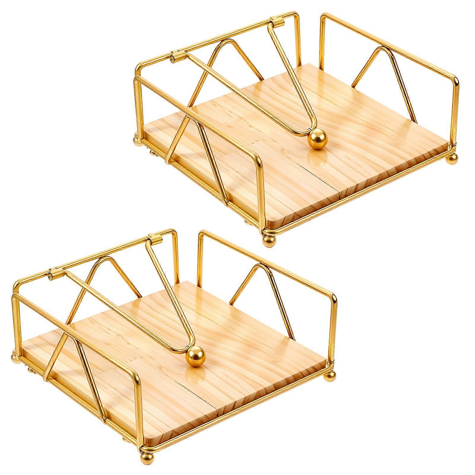 2 Pcs Metal Gold Napkin Holder with Weight Arm and Rustic Wood Base for Kitchen Table